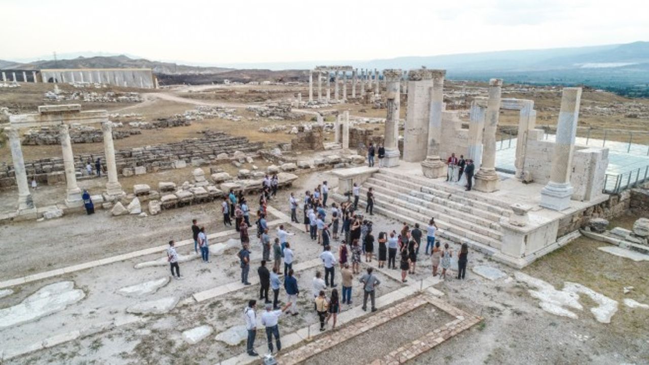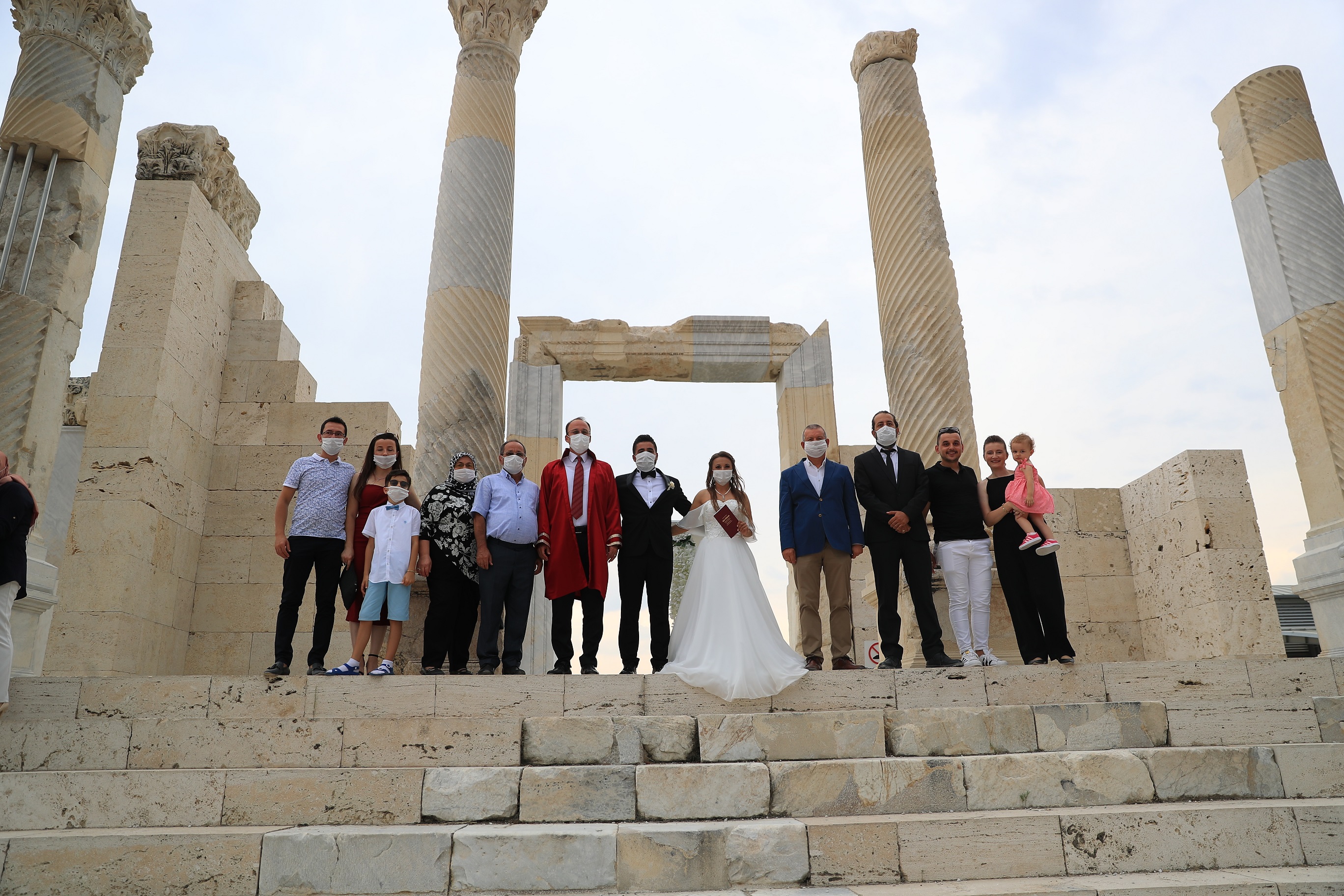 Arkeolog çift, antik kentte düzenlenen nikah töreniyle dünyaevine girmenin mutluluğunu yaşadı.