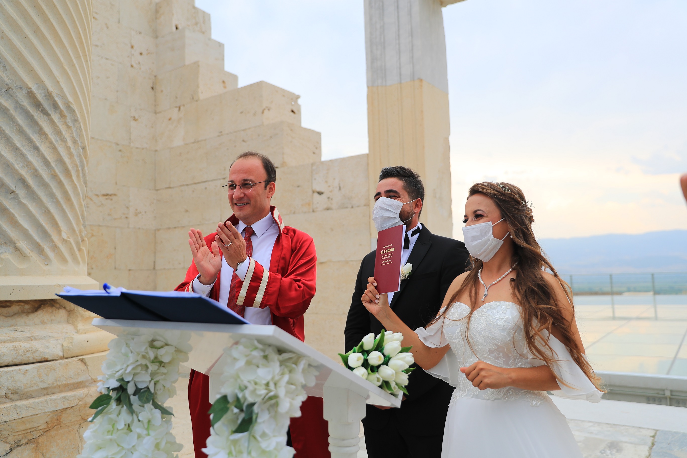 Örki, çifte mutluluklar dileyerek, tarihi Laodikya Antik Kenti'nde nikah kıymanın kendisine mutluluk ve heyecan verdiğini dile getirdi.