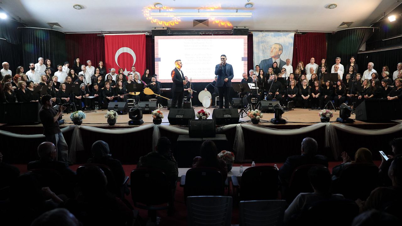 Gecenin ilerleyen bölümünde Aliağa Belediye Başkanı Serkan Acar, Belediye Başkan Yardımcısı Mesut Öztürk ve Kültür Sanat ve Sosyal İşler Müdürü Serap Cerrahoğlu da sahneye çıkarak koronun son türküsüne eşlik etti.