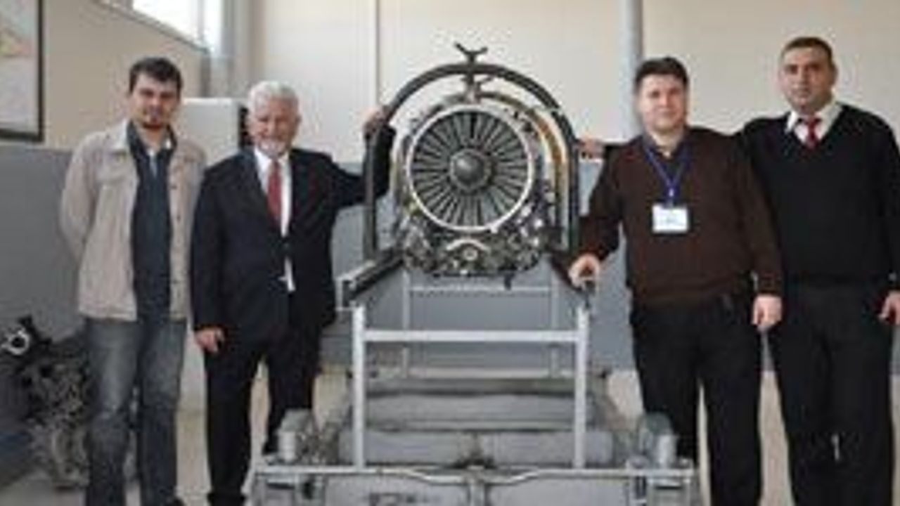Turbo motora sahip olan uçak motoru hakkında bilgi veren EMYO Müdürü Prof. Dr. Semih Güneş, şöyle konuştu: 'Eğitim programımız Boeing ve Airbus modeli uçak parçaları üretmektedir. Bu ürünlerin kabul görmesi için firmalar uluslararası alanda kabul edilen eğitim programları ve sertifikalar istiyor. Biz de bu istenilen programlara yönelik öğrenci yetiştirmeyi hedefliyoruz.'