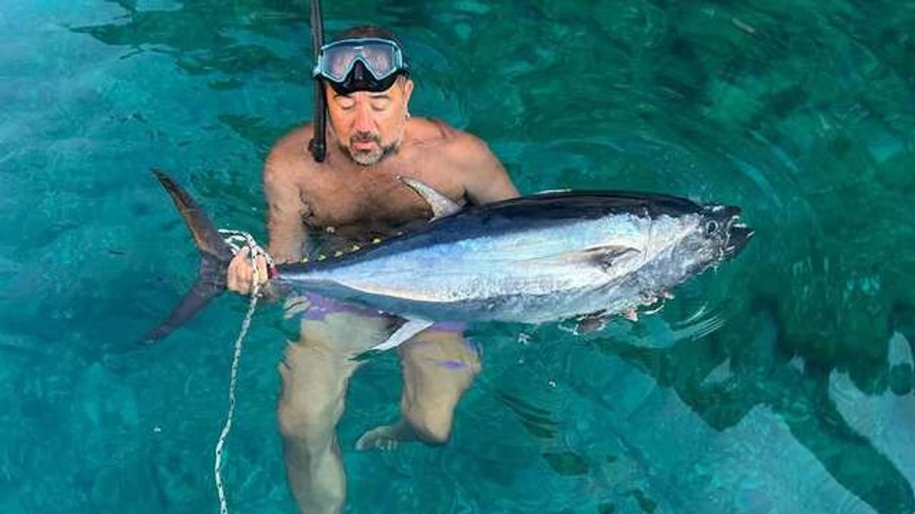 Ata Demirer, tahmini 1.5 metre uzunluğundaki bir orkinos balığını tuttuğu anları takipçileriyle paylaştı.