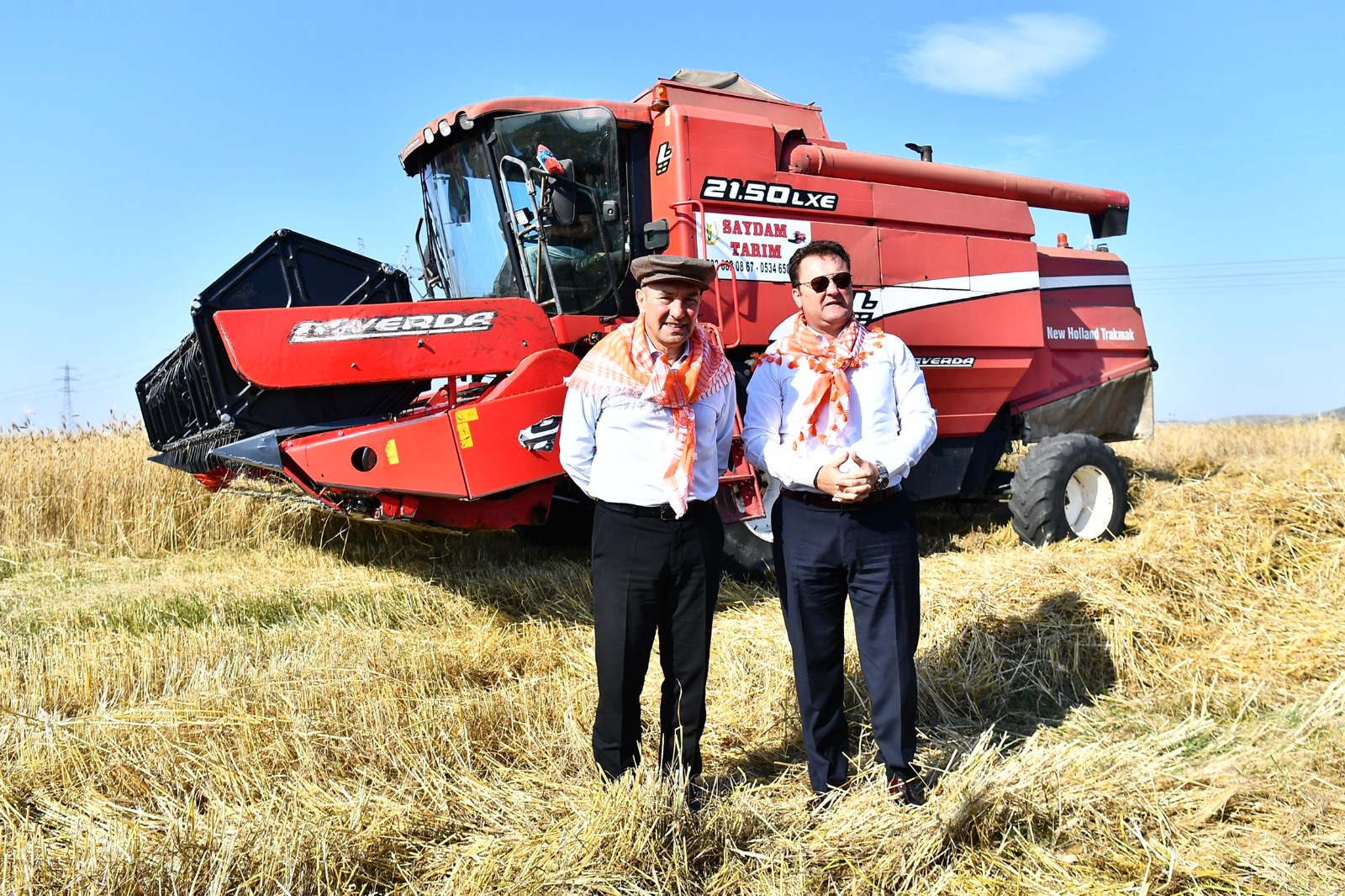 İzmir Büyükşehir Belediyesi kaybolmaya yüz tutmuş karakılçık buğdayını İzmir'in bereketli topraklarıyla yeniden buluşturdu. İthal tohum yerine yerel tohum üretmek ve buğday üreticilerine destek sağlamak için Menemen, Ödemiş ve Tire'de geçtiğimiz yıl ilk kez toprakla buluşan karakılçık buğdayının hasadı başladı. 'Başka bir tarım mümkün' diyerek çalışmalarını sürdüren İzmir Büyükşehir Belediye Başkanı Tunç Soyer, geçtiğimiz hafta Ödemiş ve Tire'nin ardından bugün de Menemen'de karakılçık buğdayı hasadını başlattı. Başkan Soyer,Menemen Belediye Başkanı Serdar Aksoy ile birlikte biçer dövere binerek tarlada hasat yaptı. Hasat programına İzmir Köy-Koop Birliği Yönetim Kurulu Başkanı Neptün Soyer, Menemen Belediye Başkanı Serdar Aksoy'un eşi Dilek Aksoy, muhtarlar ve üreticiler katıldı.