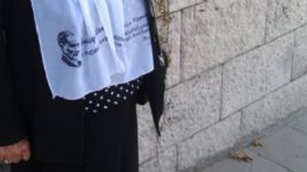 Üzerindeki bir tarafında Atatürk baskılı fotoğraf diğer tarafında yine Atatürk'ün, 'Milletin istiklalini, yine milletin azim ve kararı kurtaracaktır' sözleri yazılı fuları görevli polisler tarafından 'siyasi simge ve sembol obje' gerekçe gösterilerek TBMM' ne alınmadı.