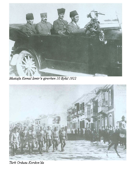 Gerçekten de İzmir'in işgalden kurtuluşu Ulusal Kurtuluş Savaşı'nın nihai hedefi haline gelmişti. 9 Eylül 1922 günü Türk birlikleri İzmir'e girdiklerinde Mustafa Kemal o geceyi Fevzi Çakmak ve İsmet İnönü ile birlikte Nif'te (Kemalpaşa) geçirmişlerdi. Mustafa Kemal Paşa, burada zafer sevincinden hareketsiz kalan arkadaşlarına yönelik olarak 'Yahu, İzmir'e girdiğimiz akşamdır bu!.. Bu kadar sessiz mi geçecek? Haydi bari biz kendimiz şarkı söyleyelim.' sözleriyle onları coşturmuş ve hep birlikte daha Kurtuluş Savaşı'nın başlangıcında Samsun'dan Anadolu içlerine giderken söyledikleri 'Dağ Başını Duman Almış' marşını söylemişlerdi. O ve Türk ulusu üç sene dört ay süren bir devasa mücadele sonucunda Akdeniz'in mavi sularına ulaşmışlardı. Mustafa Kemal bu durumu not defterine şöyle imlemişti: '15 Mayıs 1335 (1919) İzmir'i işgal. 3 sene 4 ay. Ben aynı günde İstanbul'u terk… O kara günde Karadeniz'den, bu gün Akdeniz'deyim.'