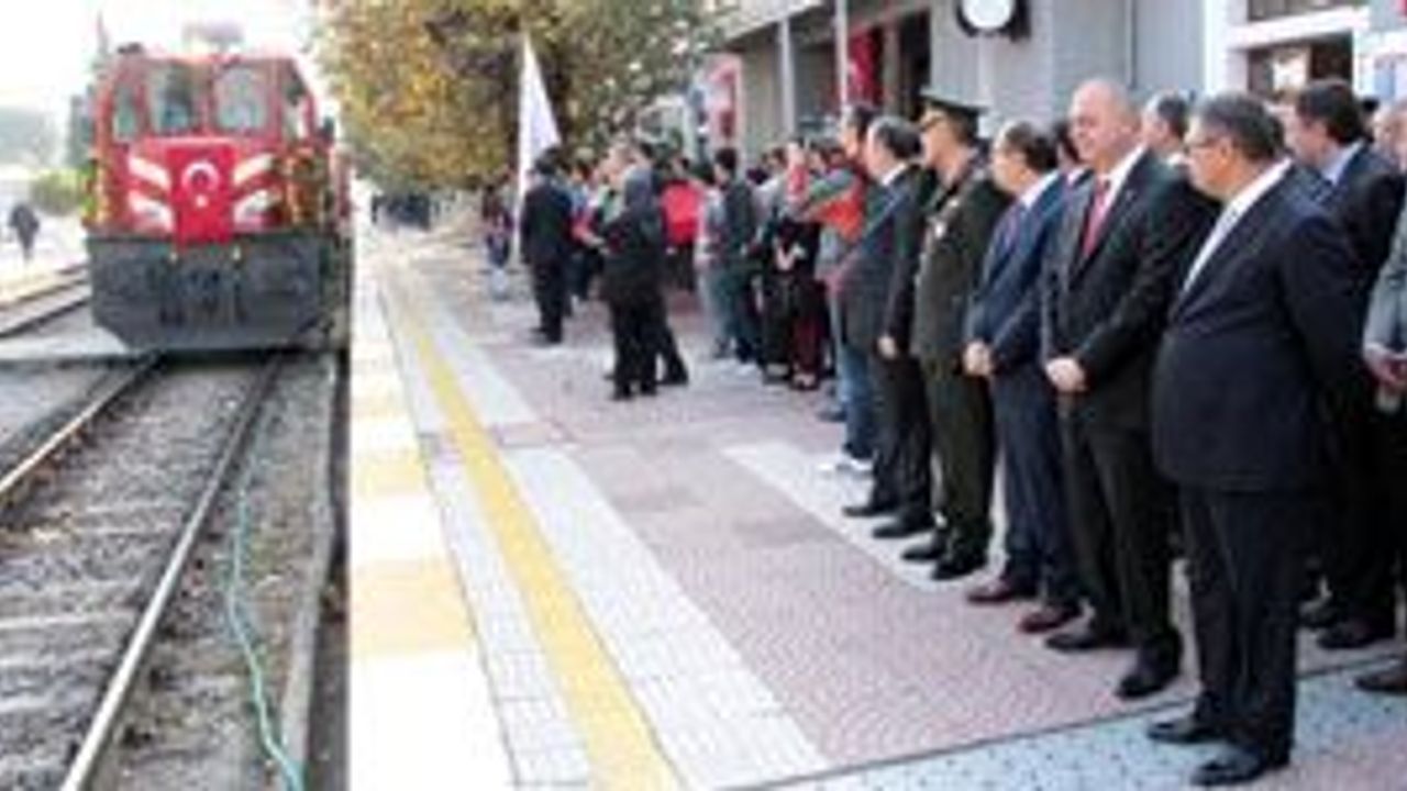 MANİSA - Manisa Garı'nda düzenlenen törene MHP Manisa Milletvekili Erkan Akçay, Vali Abdurrahman Savaş, Manisa Belediye Başkanı MHP'li Cengiz Ergün, Tugay Komutanı Tuğgeneral Yavuz Ekrem Arslan, sivil toplum örgütleri ve siyasi partilerin temsilcileri ve öğrenciler katıldı. Ulu Önder Atatürk'ün maskını getiren trenden önce İzmir Mavi Yolcu Treni'nin gelmesi törene katılanları şaşırttı. Törene katılanlardan bazıları trenden inen yolculara 'Hoş geldiniz' dedi. Daha sonra Atatürk'ün maskını getiren tren alkışlarla karşılandı.