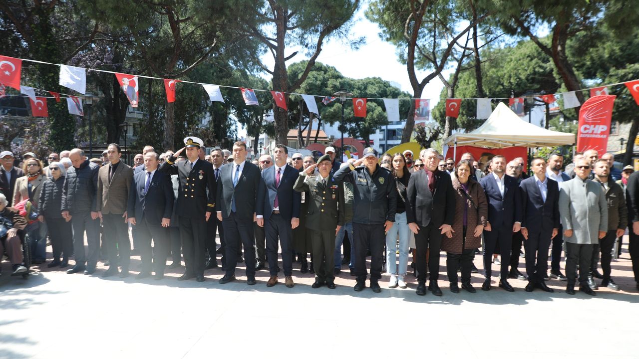 İlçe protokolünün katılımıyla düzenlenen tören Seferihisar Belediye Bandosu eşliğinde saygı duruşu ve İstiklal Marşı okunması ile başladı.