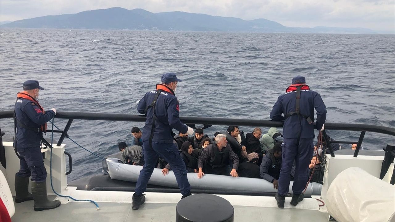 Ekiplerce durdurulan lastik bottaki 17'si çocuk 37 düzensiz göçmen yakalandı.