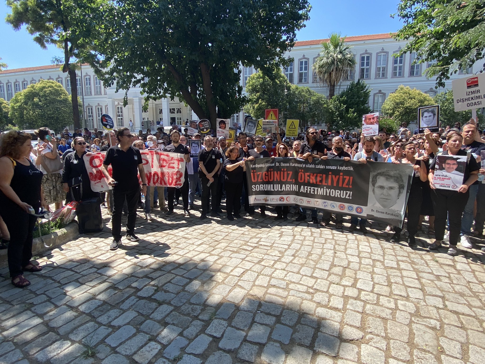 Geçtiğimiz gün sağlıkta şiddetin en acı örneklerinden birine tanık olan Türkiye, Konya Şehir Hastanesi'nde Hacı Mehmet Akçay iddialara göre annesinin ölümünü sorumlu tuttuğu Doktor Ekrem Karakaya'yı görev başındayken öldürmüştü. Acı olay üzerine basın açıklamasında bulunan Türk Tabipler Birliği (TTB) , Türkiye genelinde grevde olduklarını 'Öfkeliyiz, şiddete karşı 7-8 Temmuz'da g(ö)revdeyiz' ifadeleriyle duyurmuştu. Buna göre TTB'ye bağlı İzmir Tabip Odası'na kayıtlı hekimlerin acil müdahale gerektiren durumlar dışında hasta kontrolü yapmayacağı öğrenildi.