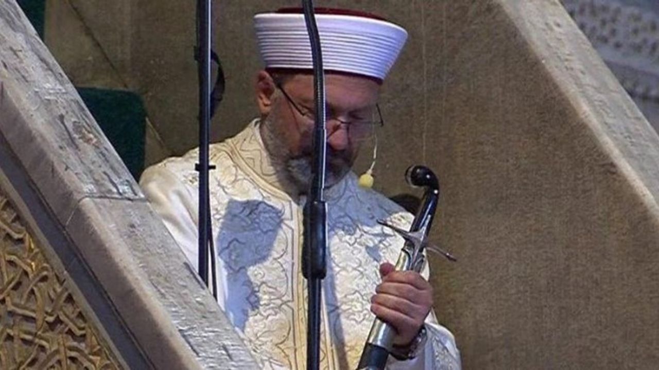 Ayasofya'daki ilk cuma hutbesini kılıçla okuyan Erbaş'ın 'Bizim inancımızda vakıf malı dokunulmazdır, dokunanı yakar. Vakfedenin şartı vazgeçilmezdir, çiğneyen lanete uğrar' ifadeleri tepkİ çekmişti.