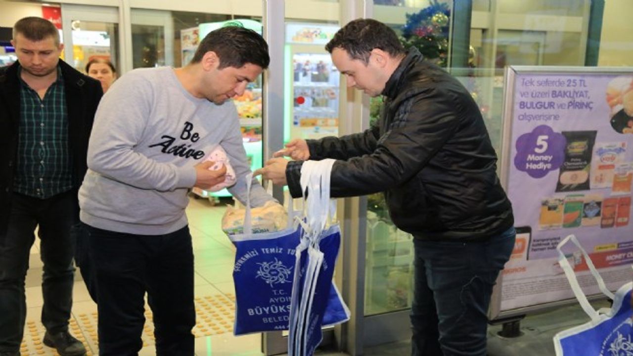 Aydın'da alışveriş merkezlerinin ve marketlerin yanı sıra Aydın Büyükşehir Belediyesi'nin kırsal kalkınmayı sağlamak için hayata geçirdiği köy pazarlarında da dağıtılacak olan çantalar, vatandaşların beğenisini kazandı.