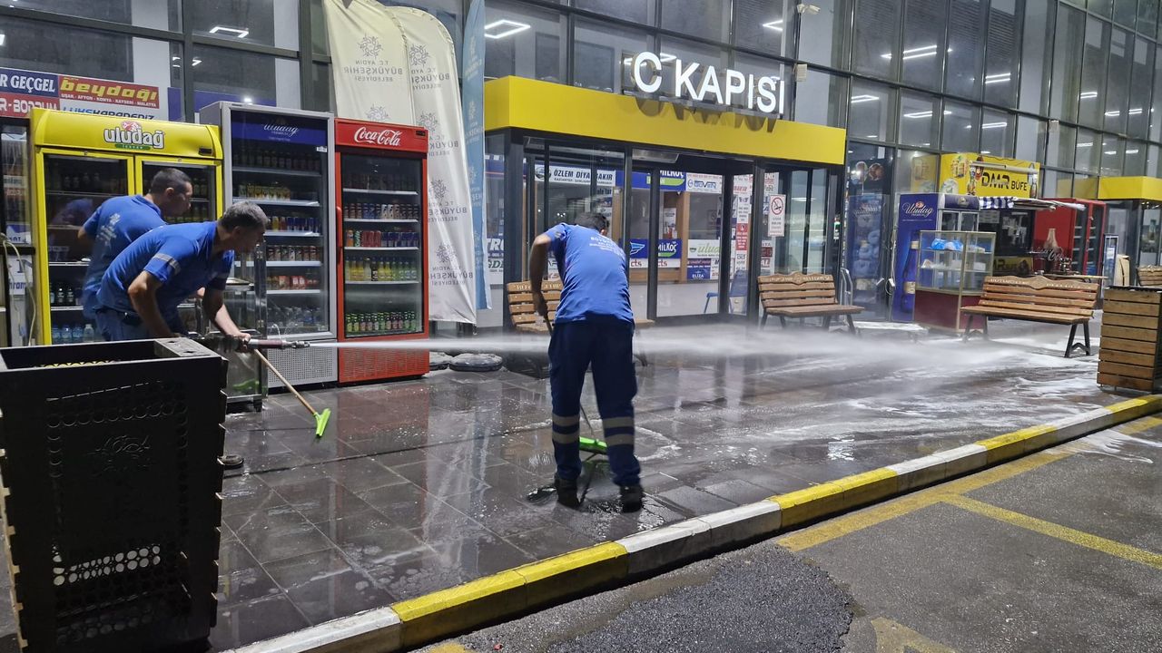Bayram tatilini geçirmek üzere turizmin ve tarihin kenti Aydın’a gelen vatandaşların yoğunluk oluşturduğu otogarlarda gece saatlerinde temizlik çalışması gerçekleştirildi. Büyükşehir Belediyesi Çevre Koruma ve Kontrol Dairesi Başkanlığı ekipleri tarafından gerçekleştirilen temizlik çalışması kapsamında Şehirler Arası Otobüs Terminali pırıl pırıl hale geldi.