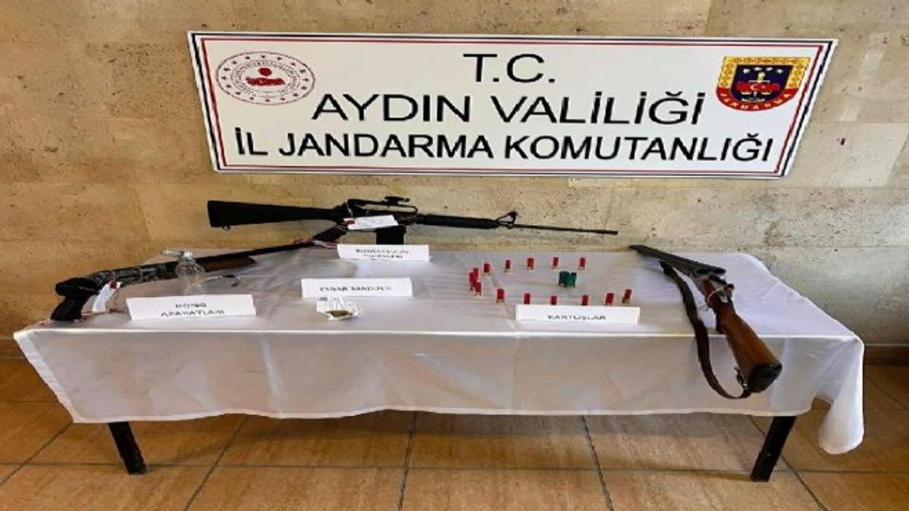 İl Jandarma Komutanlığı ekipleri uyuşturucu satıcılarına yönelik Germencik ilçesi Yenimahalle ve Mesudiye mahallerinde 4 ayrı adrese, bu sabah eş zamanlı operasyon düzenledi. Evlerde yapılan aramalarda 10 gram kubar esrar, 2 uyuşturucu kullanma aparatı, ruhsatsız 3 av tüfeği ele geçirildi. Şüpheliler, Ö.Y., S.E., N.Y. ve A.Y. gözaltına alındı. Şüphelilerin polisteki işlemlerinin sürdüğü bildirildi. (DHA)