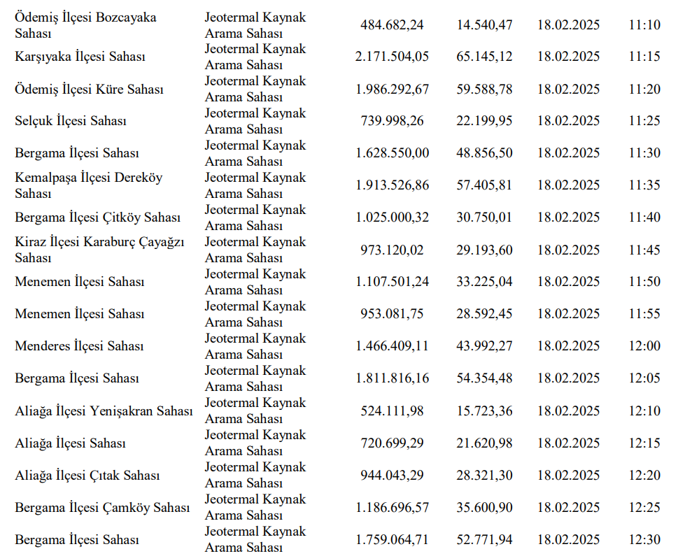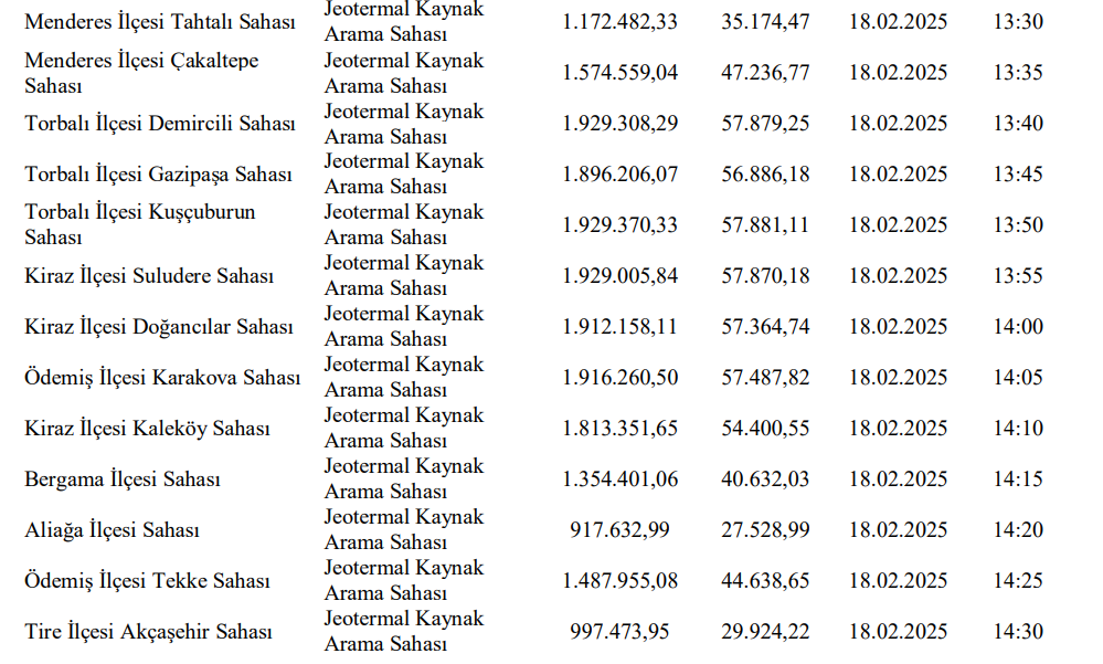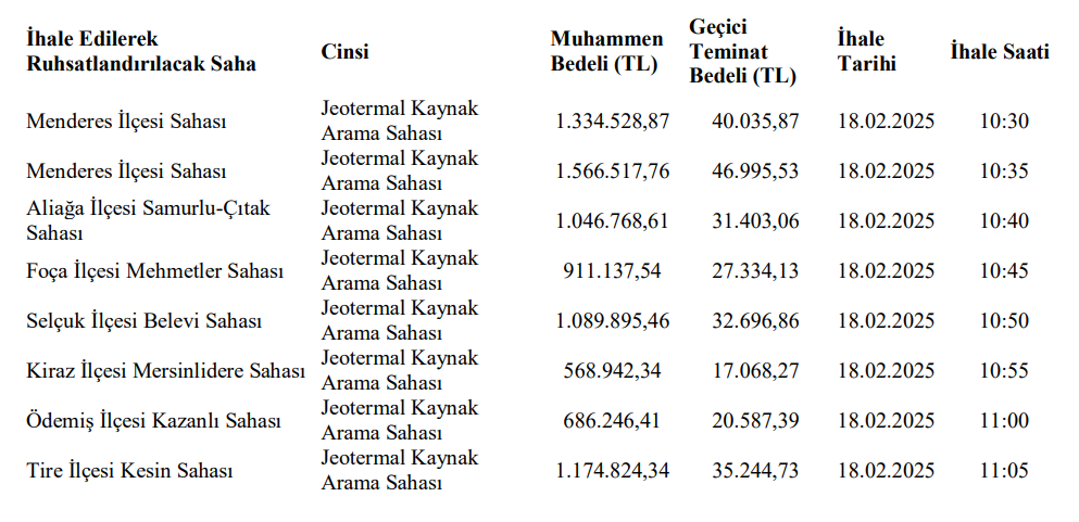 Valilik tarafından yapılan duyuruda "5686 sayılı Jeotermal Kaynaklar ve Doğal Mineralli Sular Kanununa göre ruhsatlandırılmalarına ilişkin aşağıda cins, muhammen bedeli ve geçici teminatı yazılı bulunan 40 adet Jeotermal Kaynak Sahası, 5686 Sayılı Jeotermal Kaynaklar ve Doğal Mineralli Sular Kanununa bağlı Uygulama Yönetmeliğinin 17 nci maddesi gereğince, 2886 Sayılı Devlet İhale Kanununun 45 inci maddesi hükümlerine göre Açık Teklif Arttırma Usulüyle ihaleye çıkarılmıştır" ifadeleri yer aldı.