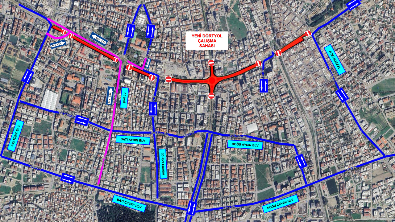 Yeni Dörtyol Kavşağı ile İmam Hatip Kavşağı arası kapalı olacağından Tepecik Bulvarı, Egemenlik Bulvarı, 522 Sokak, Mehmet Akif Caddesi, Çine Caddesi ve Atatürk Bulvarı güzergahlarını kullanabilecekler.