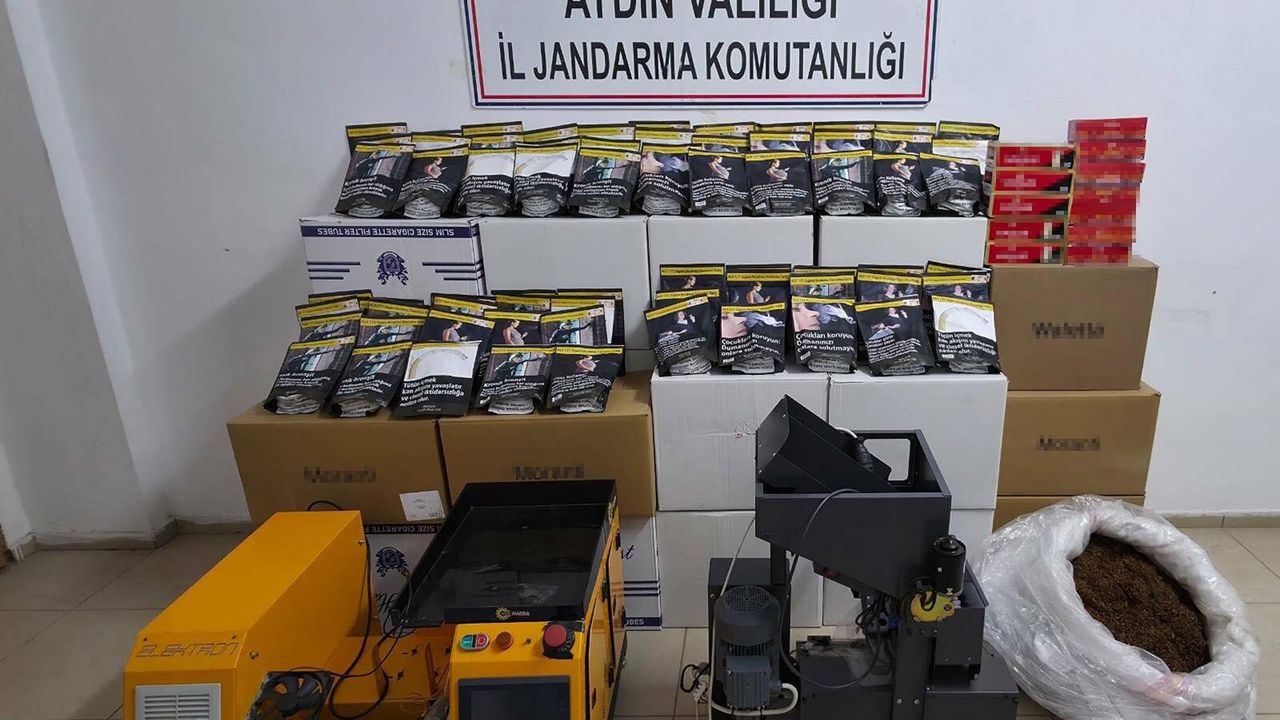 Aydın İl Jandarma Komutanlığı KOM Şube Müdürlüğü ve Çine İlçe Jandarma Komutanlığı ekipleri, 5607 Sayılı Kaçakçılıkla Mücadele Kanunu'na muhalefet kapsamında yürüttükleri koordineli çalışmalar kapsamında M.E.T.'nin Çine'nin kırsal Karakollar Mahallesi'ndeki evine operasyon düzenledi. Evdeki aramada 39 kilo 300 gram kaçak tütün, 142 bin 400 adet boş makaron, 19 bin 20 adet dolu makaron, 2 adet sigara doldurma makinesi ele geçirildi. M.E.T. gözaltına alındı. (DHA)