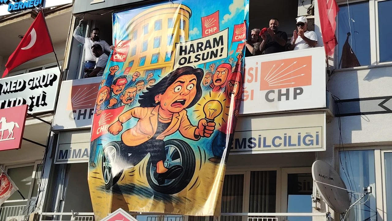 Aynı zamanda CHP Efeler İlçe Başkanlığı binasına ‘Haram olsun’ yazılı pankart asıldı. (Aydın Hedef Gazetesi)