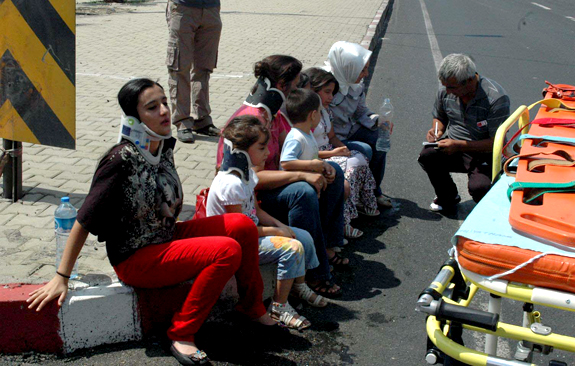 Kendi imkanları ile otomobillerden çıkan yaralılar, yol kenarında ambulansla hastaneye sevk edilmeyi bekledi. Bu sırada, yaralılardan Beyza Akçay'ın 'Anne' diyerek ağlaması yürek burktu. İki kazada yaralanan 8 kişi, Turgutlu Devlet Hastanesi'ne kaldırılarak tedaviye alındı.(DHA)