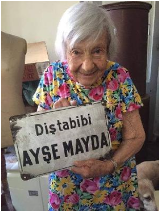 İzmirli Ayşe Mayda Birinci Dünya Savaşının tam ortasında, 1916da doğmuş. 105 yaşında vefat ettiği güne kadar yitirmediği güçlü hafızası ve her daim meraklı dimağı ile İzmirlilerin Ayşe ablasıTürkiye’nin ilk kadın ortodontisti. İzmir Amerikan Kız Kolejini bitiren Ayşe Mayda aynı yıl İstanbul Üniversitesinin o günkü adıyla "Diş Tababeti Mektebi"nibitirmiş. İzmirli olup Ayşe Mayda’yı tanımayan yoktur. İzmir’in gurur kaynağı, aydın, akıllı yüzüdür o…