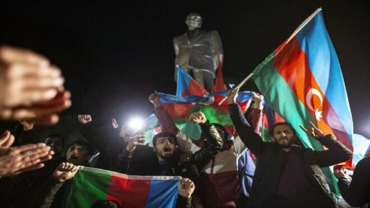 Azerbaycanlılar, Ermenistan'ın Dağlık Karabağ'daki işgalini sonlandıran bildirinin imzalanmasını meydanlarda kutluyor.