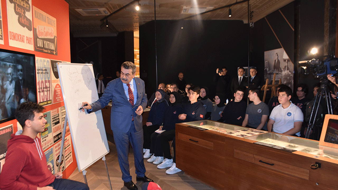 Milli Eğitim Bakanı Yusuf Tekin, Aydın programı kapsamında Adnan Menderes Müzesi’ni ziyaret etti. Müzede Adnan Menderes Anadolu İmam Hatip Lisesi, Aydın Lisesi, Aydın Sosyal Bilimler Lisesi, Aydın Fen Lisesi, Yüksel Yalova Güzel Sanatlar Lisesi’nden öğrencilere ‘Demokrasi ve İnsan’ konulu ders verdi. Programda Yüksel Yalova Güzel Sanatlar Lisesi öğrencileri müzik dinletisi gerçekleştirdi. Türkiye'deki demokrasinin işleyişiyle ilgili öğrencilere ders anlatan Bakan Tekin, yasama, yürütme ve yargıyla ilgili bilgi aktardı. Bakan Tekin, demokrasinin en temel parametresinin demokratik özgür seçimler olduğunu söyledi.