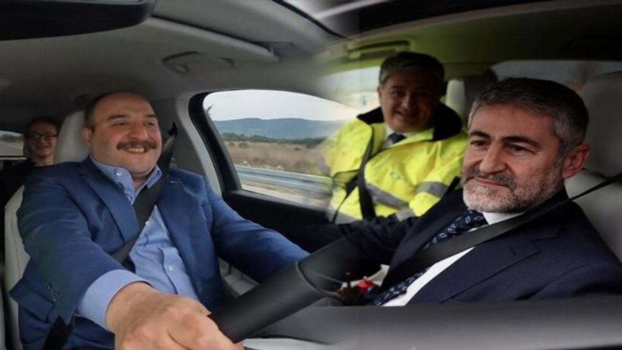 Togg'un testlere giren en üst versiyonu, bu kez iki bakanı ağırladı. Sanayi ve Teknoloji Bakanı Mustafa Varank ile Hazine ve Maliye Bakanı Nureddin Nebati, Togg'un direksiyonuna geçerek deneme sürüşü yaptı.