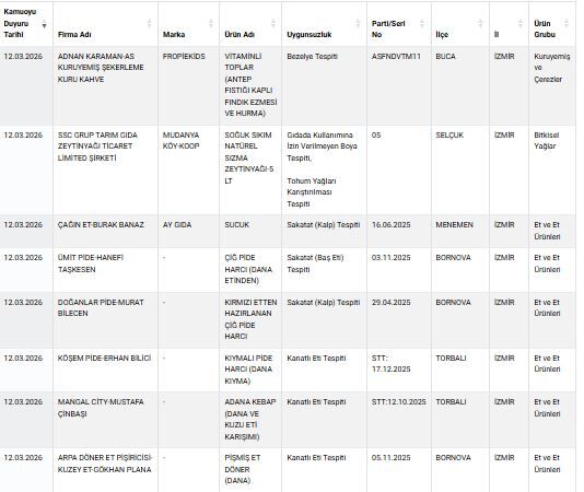 EGEDESONSÖZ- Tarım ve Orman Bakanlığı tarafından yayımlanan taklit ve tağşiş yapılan gıdalar listesinde İzmir’den birçok işletme yer aldı.