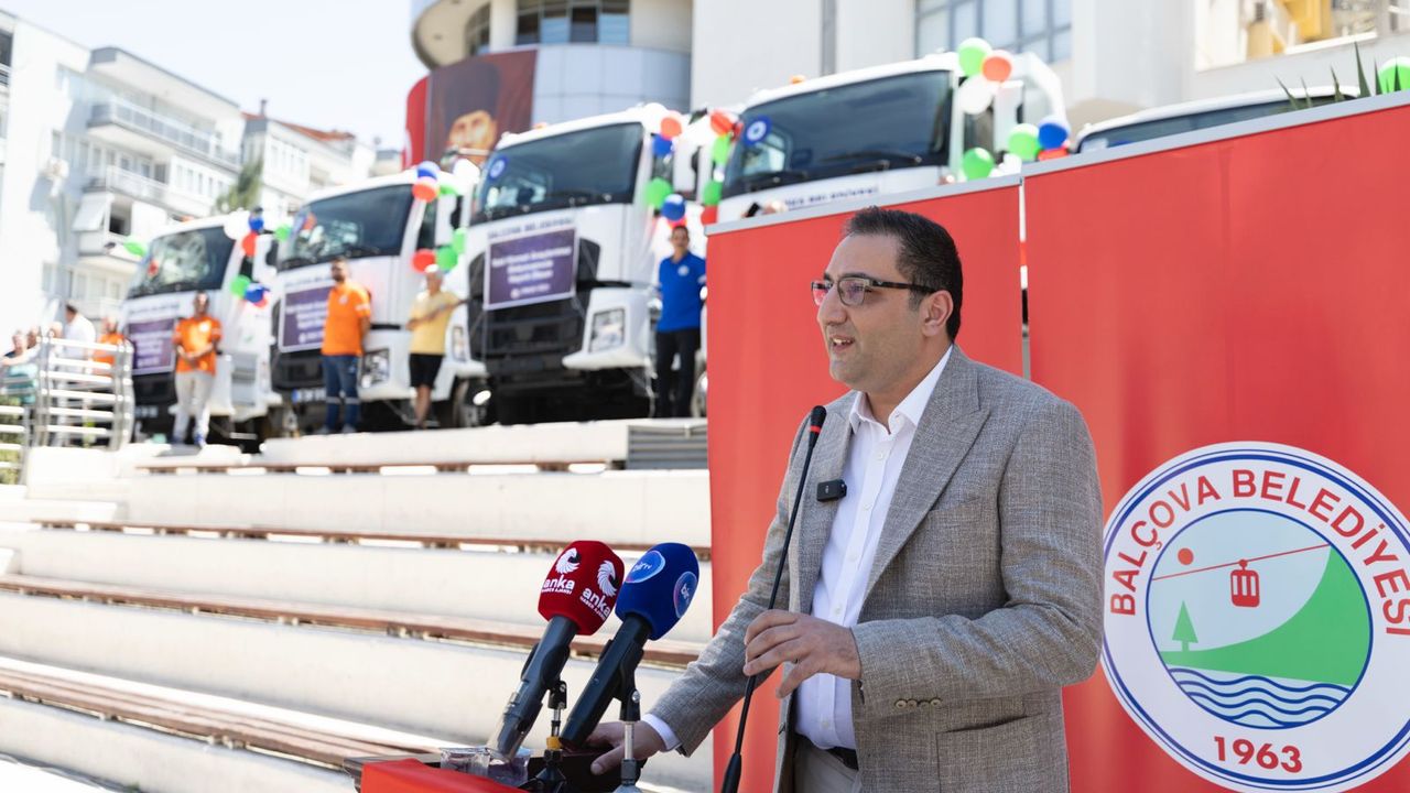 Belediye hizmet binası önündeki Cumhuriyet Meydanı’nda düzenlenen törende konuşan Yiğit, belediyeye 4 çöp kamyonu, 2 damperli kamyon, 1 kepçe, 1 minibüs, 4panelvan araç, 1 ambulans ve 5 binek araç olmak üzere 18 hizmet aracı kazandırdıklarını söyledi. İlçe sakinlerinin desteğinin önemine vurgu yapan Yiğit, şunları söyledi: “Göreve geldikten sonra yaklaşık bir buçuk yıl içinde ‘Bir kent lokantası açacağız. Burada 90 liraya her gün 500-600 kişiyi ağırlayacağız’ dedik. ‘Her hafta asfalt sereceğiz, Balçova’nın yollarını güzelleştireceğiz’ dedik. ‘365 gün çalışacağız, gözle görülür değişiklikler olacak’ dedik. ‘Parklara, bahçelere gireceğiz’ dedik. ‘4 bin haneye sosyal yardım yapacağız’ dedik. Ayrıca ‘Araç ekipmanımız yetersiz, kepçemiz, kamyonumuz yok, çöp kamyonlarımız yolda kalıyor. Bunun için kamyon almamız lazım’ dedik. Belki bunları söylediğimde inanmayanlar olabilir. Bana hatta, ‘Sen önce İller Bankası’ndan gelen paranın iki buçuk katını daha bulup maaşlarını öde’ dediler. Çünkü ancak bu şekilde maaş ödeyebiliyoruz. Ama biz ne yaptık, Balçova’ya inandık, potansiyeline, gücüne inandık. Tasarruf ettik, çok çalıştık ve kaynakları bularak dediklerimizi çok şükür ki yaptık.”