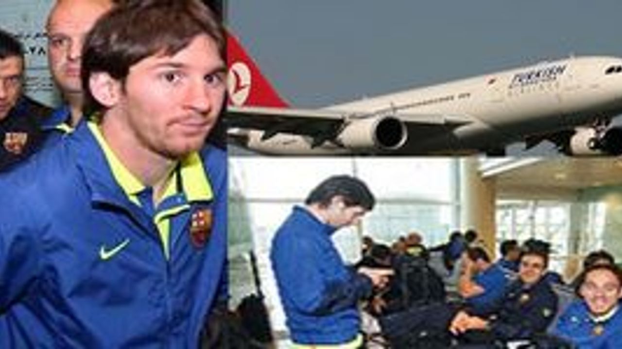 THY uçağı direkt uçuş izni verilmediği için İstanbul’’a inerek aktarma yapmak zorunda kaldı. Saat 15.53 sıralarında Atatürk Havalimanı’’na gelen uçak parka çekilerek yakıt ikmali yapıldı. Barcelonalı futbolcular ve teknik ekip kabinden çıkmadı. Yaklaşık 1 saat süren bekleyişin ardından THY uçağı Abu Dabi’’ye gitmek üzere tekrar havalandı.
