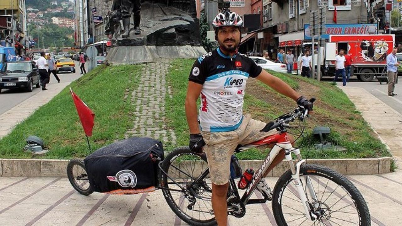 Aynı zamanda çocukluk hayalini de gerçekleştirdiğini anlatan Öztürk, 'Ülkemi gezerken bunun bir amacı da olsun istedim. Ülkemizdeki olumsuz süreçlerde yaşanan tatsız olaylarda terörle ilgili durumları göz önüne alarak bunu 'Barış için pedalla' adında proje yaparak yola çıkmayı uygun gördüm. Yolculuğum yaklaşık 7-8 ayı kapsıyor. Bu kadar zamanı kendine ayırabilecek bir arkadaş bulamadım. Ayrıca Doğu ve Güneydoğu'ya gittiğim için bu bölgelere gelmeye birçok arkadaşım çekindi. Bu sebeplerden dolayı yola tek başıma çıktım. Yaklaşık 5 aydır bisikletimle birlikte yollardayım.' diye konuştu.