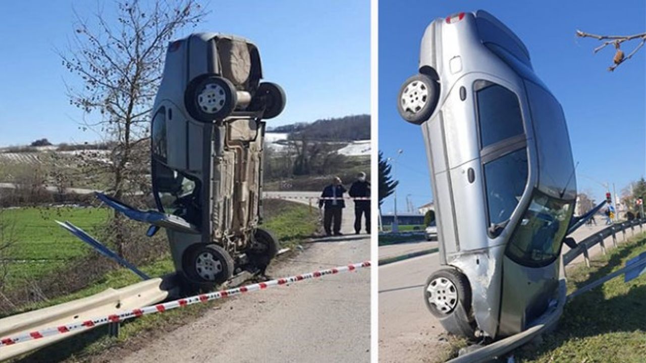 Kaza, öğle saatlerinde Kandıra ilçesi Işıklar mevkiinde meydana geldi. İbrahim Çelebi yönetimindeki 38 EH 309 plakalı otomobil, kontrolünden çıkıp bariyerlere çarptı. Ön kısmı bariyere sıkışan otomobil, dik bir şekilde durdu. Yoldan geçen diğer sürücülerin ihbarı üzerine kaza yerine sağlık ekipleri sevk edildi. Yaralanan İbrahim Çelebi, gelen ambulansla Kandıra Kazım Dinç Devlet Hastanesi'ne kaldırılarak tedaviye alındı. Otomobil ise vinç ile alınarak otoparka çekildi. (DHA)