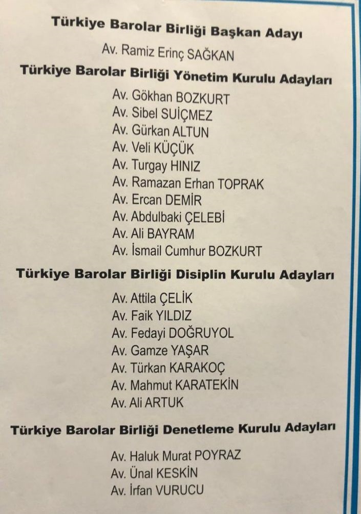Buna göre, 181 oy alan Erinç Sağkan Türkiye Barolar Birliği'nin yeni başkanı seçildi.