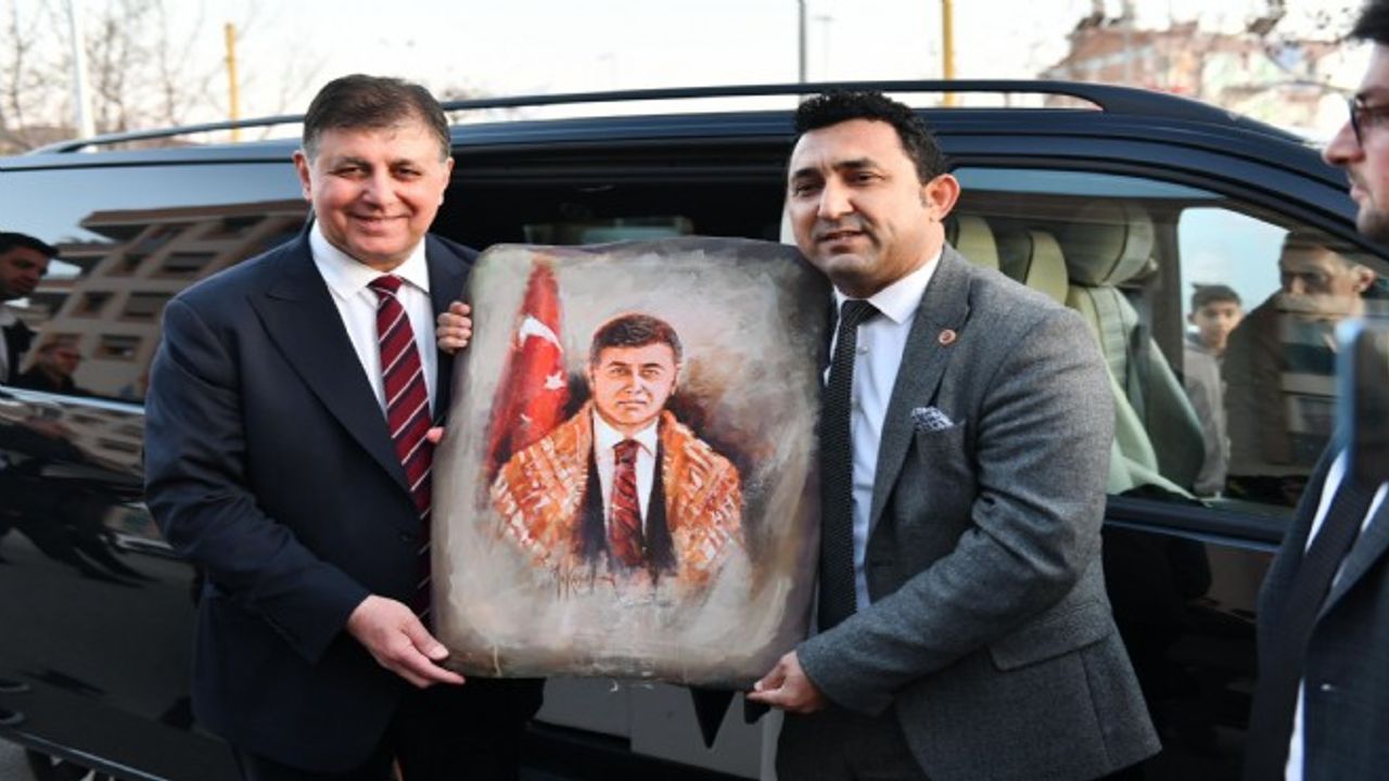 Resmi hediye eden Mustafa Ali Fırtına, 'Bireysel imkanlarıyla Ödemiş'teki çocuklarımız için burs desteğini ben biliyorum. Bu tabloyu o çocuklarımız kendisine armağan etmek üzere bugün verdiler. Doğu ve Güneydoğu'da 'poşu' olarak bilinir ama Ege Bölgesi'nde 'yağlık' deriz. Genelde silahların yağını temizlemek üzere yapılmıştır ama sonrasında emekçilerin alnındaki terleri silmek için kullanılmıştır. Ben Cemil Başkanımın Küçük Menderes Havzası'nda yapacağı hizmetlerin sonrasında o terini bu poşuyla silmesini temsil eden tabloyu kendisine sunuyorum. Kendisini tanıdığım için de çok mutluyum' diye konuştu.