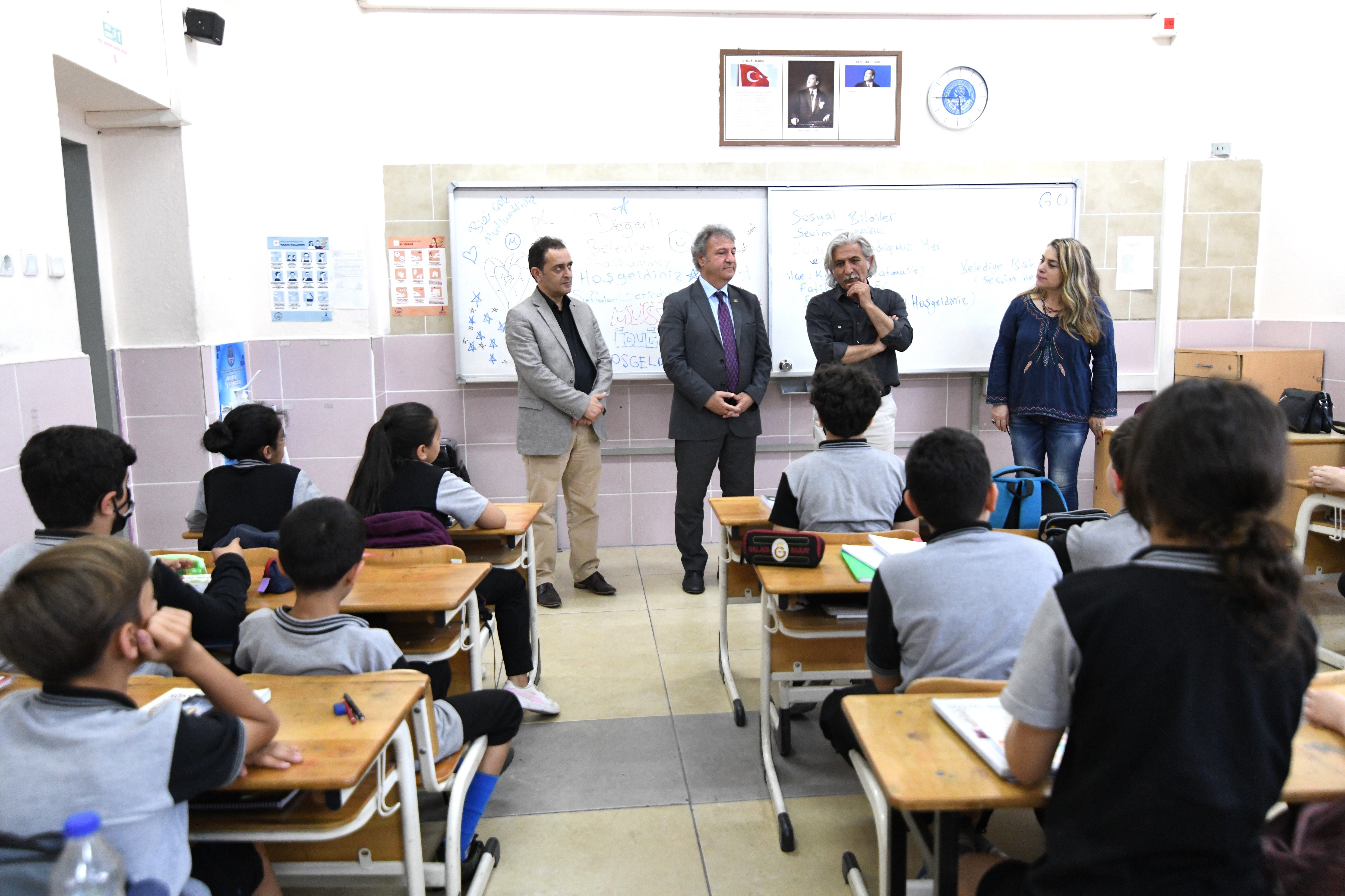 Bornova Belediye Başkanı Dr. Mustafa İduğ, Bornova Kaymakamı Fatih Genel ile birlikte Bornova Yavuz Sultan Selim Ortaokulu'nu ziyaret edip, 5. Sınıf öğrencilerinin Sosyal Bilgiler Dersi'ne girdi. 'Yaşadığımız Yer ve Yönetimi' konulu derste, belediyelerin görevlerini anlatan Başkan İduğ, öğrencilere yaşadıkları kenti herşeyi iyi tanımalarını gerektiğini söyledi.