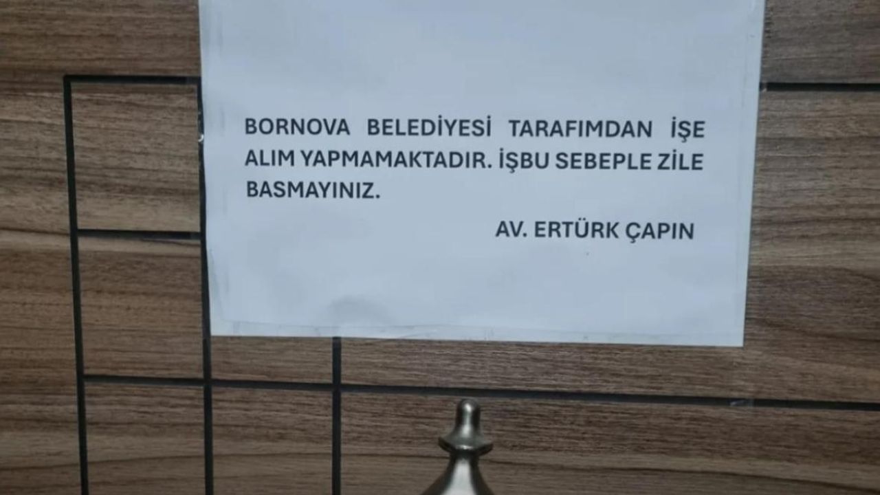 Avukatlık ofisinin kapısına "Bornova Belediyesi tarafımdan işe alım yapmamaktadır. İşbu sebeple zile basmayınız" yazan Çapın yazının arka perdesi hakkında açıklamalarda bulundu.