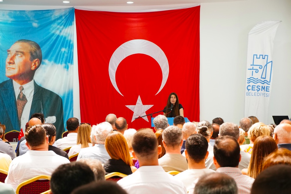 'Ben Çeşme'nin ilk kadın Belediye Başkanı olarak temelde ve geleceğe yönelik kalıcı esaslar bırakacağım bir fark yaratacaksam, bunun temelinin Kent Konseyi'nden başlamasını istiyorum. Katılımcılık esasından başlamasını istiyorum. Kente dair kararların benim tarafımdan değil; bizim tarafımızdan verildiği bir anlayışla yönetilmesini arzu ediyorum. Kenti duymayı, kenti dinlemeyi ihmal etmeyelim. Toplumda yaşayan her türlü dinamiğin temsil edilmesine özen gösterelim. Engelli Meclisi, Muhtarlar Meclisi bize yol gösterici olacaktır. Çalışma gruplarının sayısının artırılması için ihtiyaç duyulduğu takdirde kent konseyi başkanı ve yürütme kuruluna gerekli çağrıları yapalım. Bizler kentimizin her unsuruna sahip çıkarak onu geleceğe taşıyacak, onu bir bütün halinde kalkındıracak bir anlayışla kent konseyini ele almalıyız. Çeşme'yi bir özelliği ile değil; birçok özelliği ile ele aldığımız turizmden esnaf zenginliğine, tarihi özelliklerinden doğa dostu hayvan dostu Çeşme yaratmak esasları ile bir yol yürümeyi hep birlikte kendimize şiar edinmeyi tavsiye ediyorum. Yollarınızın şimdiden açık olmasını diliyorum' diye konuştu.