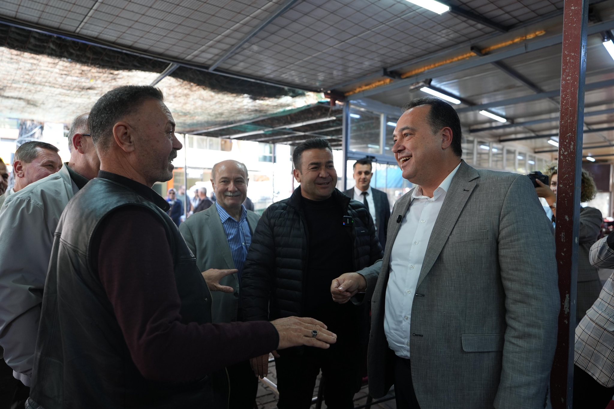 Manisa Büyükşehir Belediye Başkanı Besim Dutlulu ile Kırkağaç Belediye Başkanı Üstün Dönmez, ilçedeki sıcak asfalt çalışmalarını yerinde inceledikten sonra esnaf ziyaretinde bulundu. İlçe esnafına hayırlı işler temennisinde bulunan Başkan Dutlulu, vatandaşlarla da sohbet ederek talep ve önerilerini dinledi. Samimi bir atmosferde gerçekleşen ziyaretlerde, esnaf ve vatandaşlar Manisa Büyükşehir Belediyesi'nin ilçede gerçekleştirdiği hizmetlerden duydukları memnuniyeti dile getirerek Başkan Dutlulu’ya teşekkür etti.