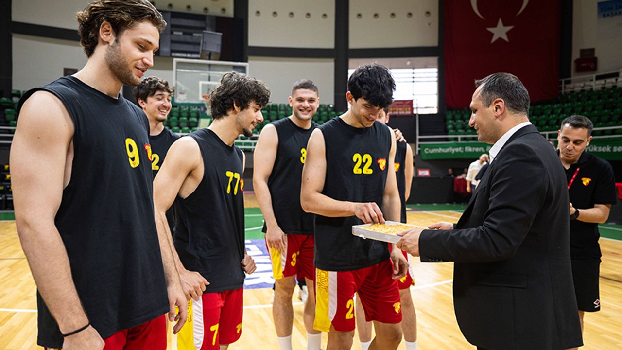Göztepe, 15 Mayıs Çarşamba(Bugün) saat 20.00’de Bornova Belediyesi Atatürk Spor Kompleksi’nde oynayacağı kritik Ada Yem Uşak Basketbol maçı öncesi Bornova Belediye Başkanı Ömer Eşki’nin ziyareti ile moral buldu. Başkan Eşki, sarı-kırmızılı oyunculara baklava ikram ederek başarılar diledi.