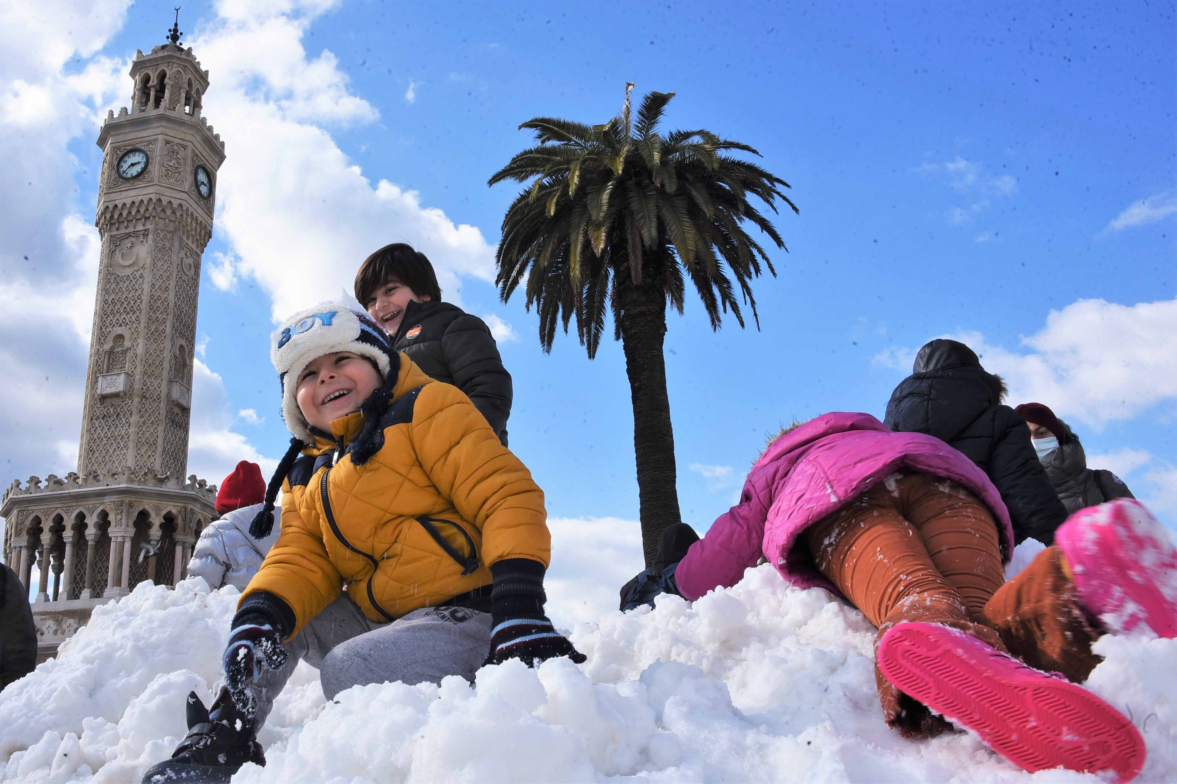 Başkan Karakayalı'nın talimatıyla, Bayramlı ve Yenikurudere Mahallesi'nden getirilen 4 kamyon kar, ilçe merkezindeki 75. Yıl İlk ve Ortaokulu, Bağyurdu Kazım Dirik İlkokulu ve il merkezinde bulunan Saat Kulesi önüne dökülerek çocuklar için sürpriz hazırlandı. Okul bahçelerinde teneffüse çıkan öğrenciler, kartopu oynayarak karın keyfini çıkarırken gönüllerince eğlenen çocuklara öğretmenleri de eşlik etti. Ayrıca, Konak Meydanı'na dökülen 2 kamyon kar ile doyasıya oynayan çocukların aileleri Başkan Karakayalı' ya bu eğlenceli sürpriz için teşekkür etti.