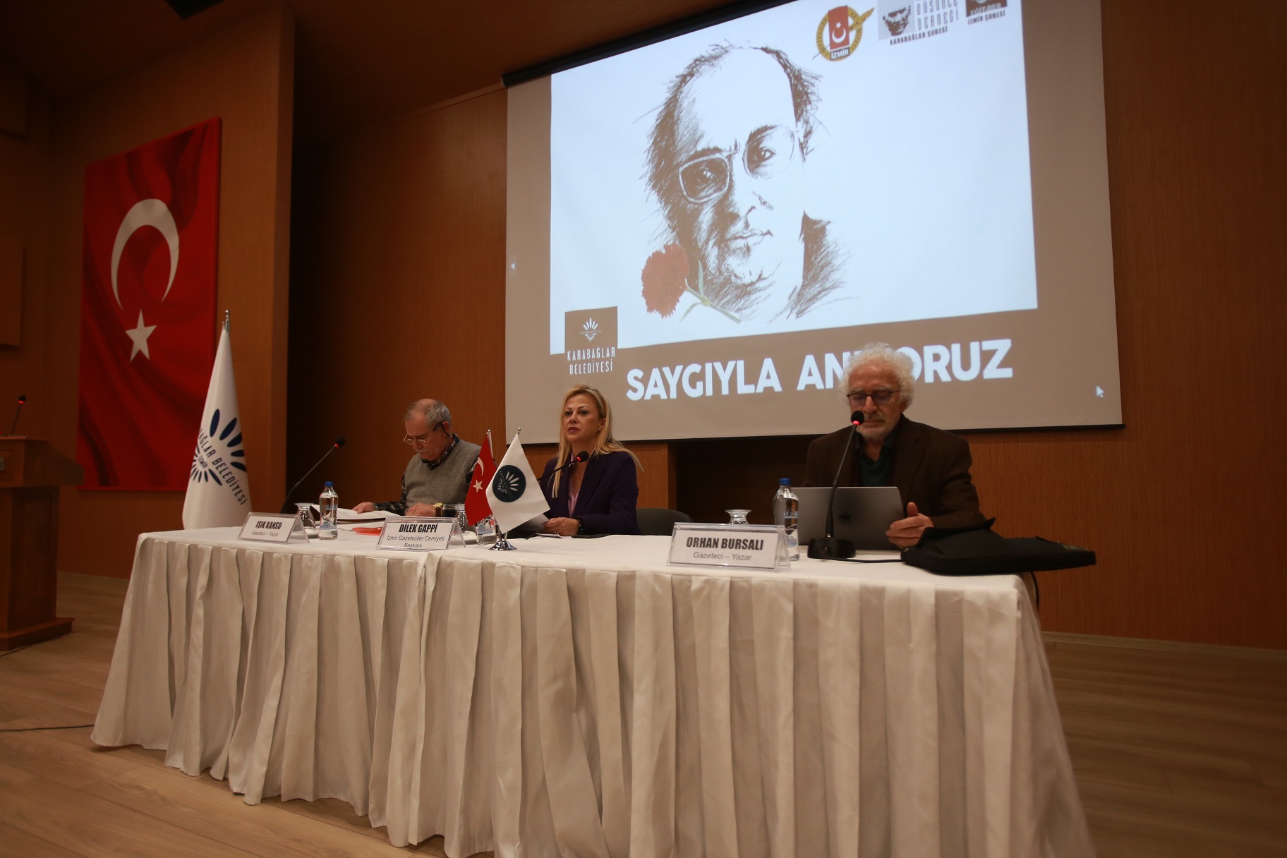 Karabağlar Kent Konseyi Başkanı Alev Ağrı, siyasi parti ve sivil toplum kuruluşu temsilcileri, meclis üyeleri, muhtarların da aralarında olduğu çok sayıda vatandaşın izlediği söyleşi, saygı duruşu ve İstiklal Marşı'nın okunmasıyla başladı. Daha sonra etkinliğin açılış konuşmasının gerçekleştiren Karabağlar Belediye Başkanı Muhittin Selvitopu, Uğur Mumcu'nun dürüstlük ve demokrasinin sembolü olduğunu vurguladı. Mumcu'nun ömrü boyunca karanlıklara ışık tutmak için yazdığını, mücadele verdiğini hatırlatan Başkan Selvitopu, 'Yazdıklarından rahatsız olanlar, ona kin güdenler bu katliamı yaptılar. Zannettiler ki bedenini ortadan kaldırınca düşünceleri de ortadan kalkacak ya da unutulacak. Ancak halkımız tarih boyunca kendisi için mücadele eden insanları bağrına basmıştır. Mumcu da halkın bağrında yerini almıştır' dedi.