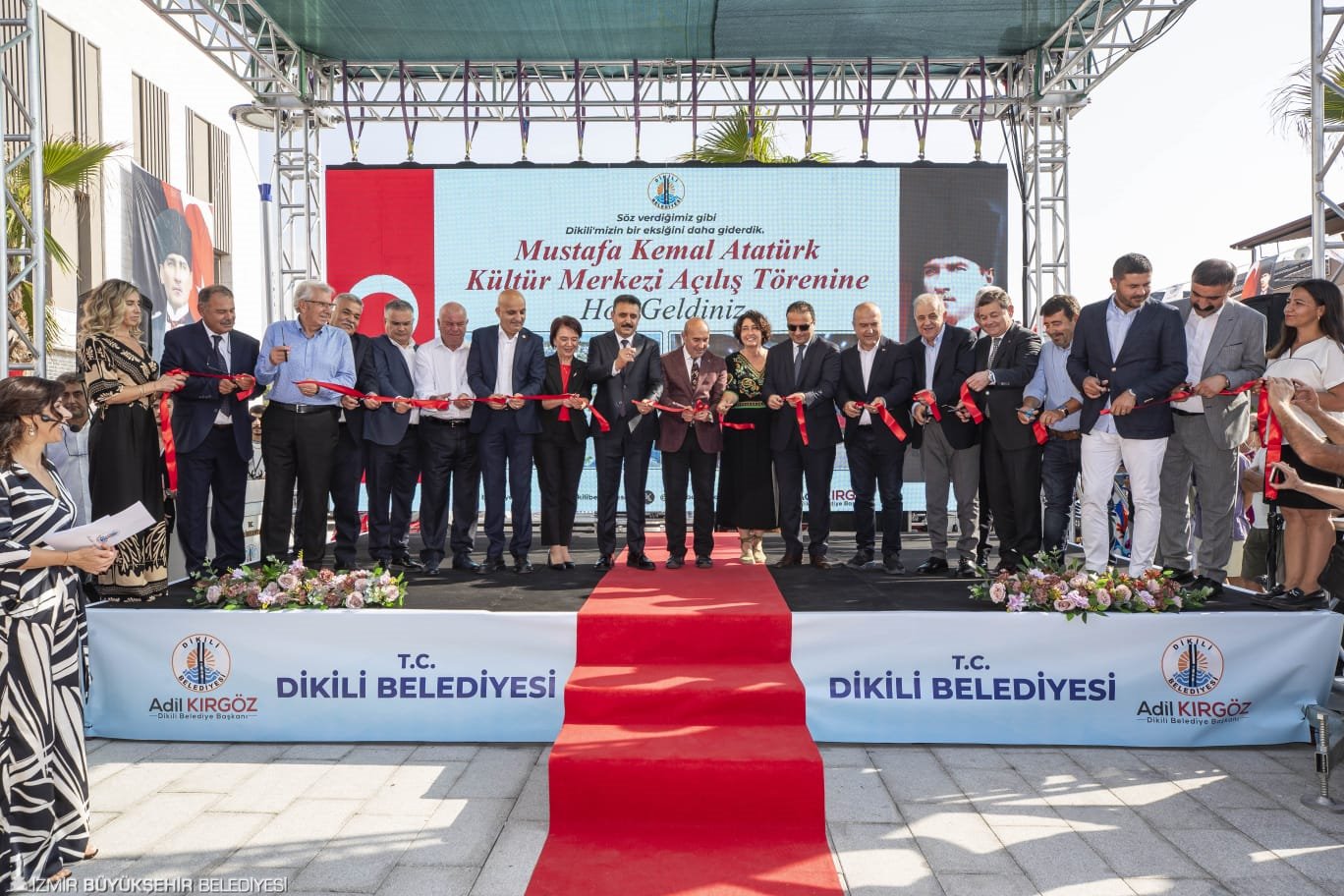 İzmir Büyükşehir Belediye Başkanı Tunç Soyer, Dikili Belediyesi tarafından yapımı tamamlanan Dikili Mustafa Kemal Atatürk Kültür Merkezi'nin açılışına katıldı. Kültür merkezinin bahçesinde düzenlen açılış törenine Başkan Tunç Soyer ve eşi Neptün Soyer'in yanı sıra Dikili Kaymakamı Ali Edip Budan, Cumhuriyet Halk Partisi İzmir Milletvekilleri Rıfat Nalbantoğlu, Murat Bakan, Mahir Polat, Dikili Belediye Başkanı Adil Kırgöz ve eşi Nesrin Kırgöz, Ödemiş Belediye Başkanı Mehmet Eriş ve eşi Selma Eriş, Torbalı Belediye Başkanı Mithat Tekin, Foça Belediye Başkanı Fatih Gürbüz, Kemalpaşa Belediye Başkanı Rıdvan Karakayalı, İzmir Büyükşehir Belediyesi Başkan Vekili Mustafa Özuslu, geçmiş dönem belediye başkanları, siyasi parti ve sivil toplum kuruluşlarının temsilcilerinin yanı sıra yurttaşlar katıldı.
