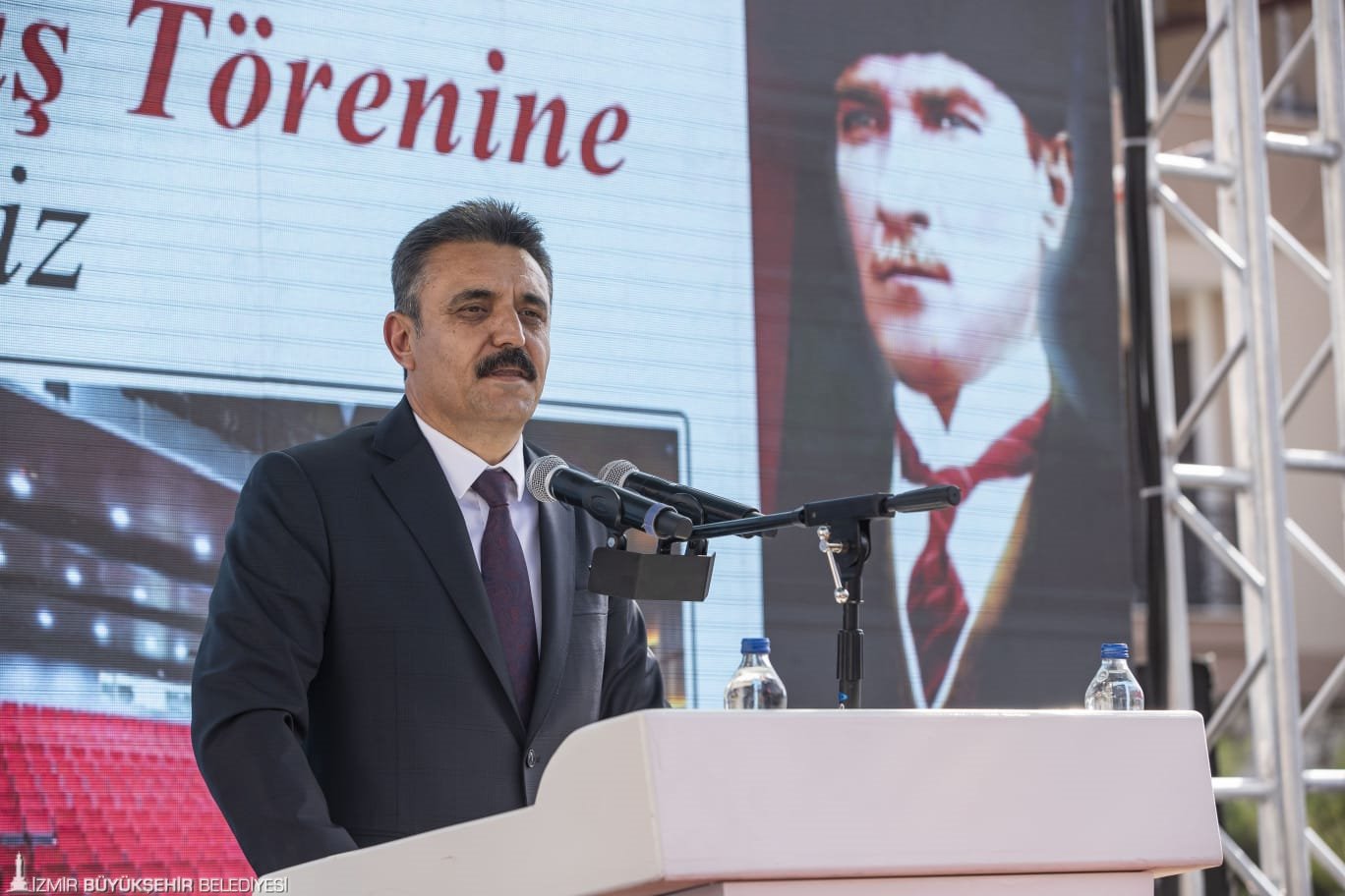 Başkan Soyer, '100 yıl önce, demokrasinin tatlı güneşi bu ülkenin üzerinde bir daha hiç batmamak üzere doğdu. Bu ülkenin evlatları; genci yaşlısı, kadını erkeği, 7'den 70'e herkes, birbirine kenetlendi. İmkanları yoktu ama yürekleri vardı. Adalete ve bağımsızlığa inançları vardı. İşte bu topraklar, emperyalizmi böyle dize getirdi. Cumhuriyet'i biz böyle kazandık. Atalarımızın kanlarıyla yazılmış bu destanı ilelebet payidar kılmaya kararlıyız. Bugün hizmete açtığımız bu Cumhuriyet kalesine Atamızın adını vermiş olmamız, İzmir'in ahde vefasıdır. Hiç kimse seçim sonrası yaşanan hayal kırıklıklarından ve öfke iklimi üzerinden hesap yapmaya kalkmasın. Türkiye'nin aydınlık yüzlü insanlarının yaşadığı İzmir, yine cumhuriyete, onun erdemlerine sonuna kadar sahip çıkacak, demokrasiyle taçlandırmak için verilecek mücadelede gözünü kırpmayacaktır. İzmir yine Türkiye'nin öncülüğünü yapacak ve yine bu memlekette büyük dönüşümün lokomotifi olacaktır' ifadelerini kullandı.