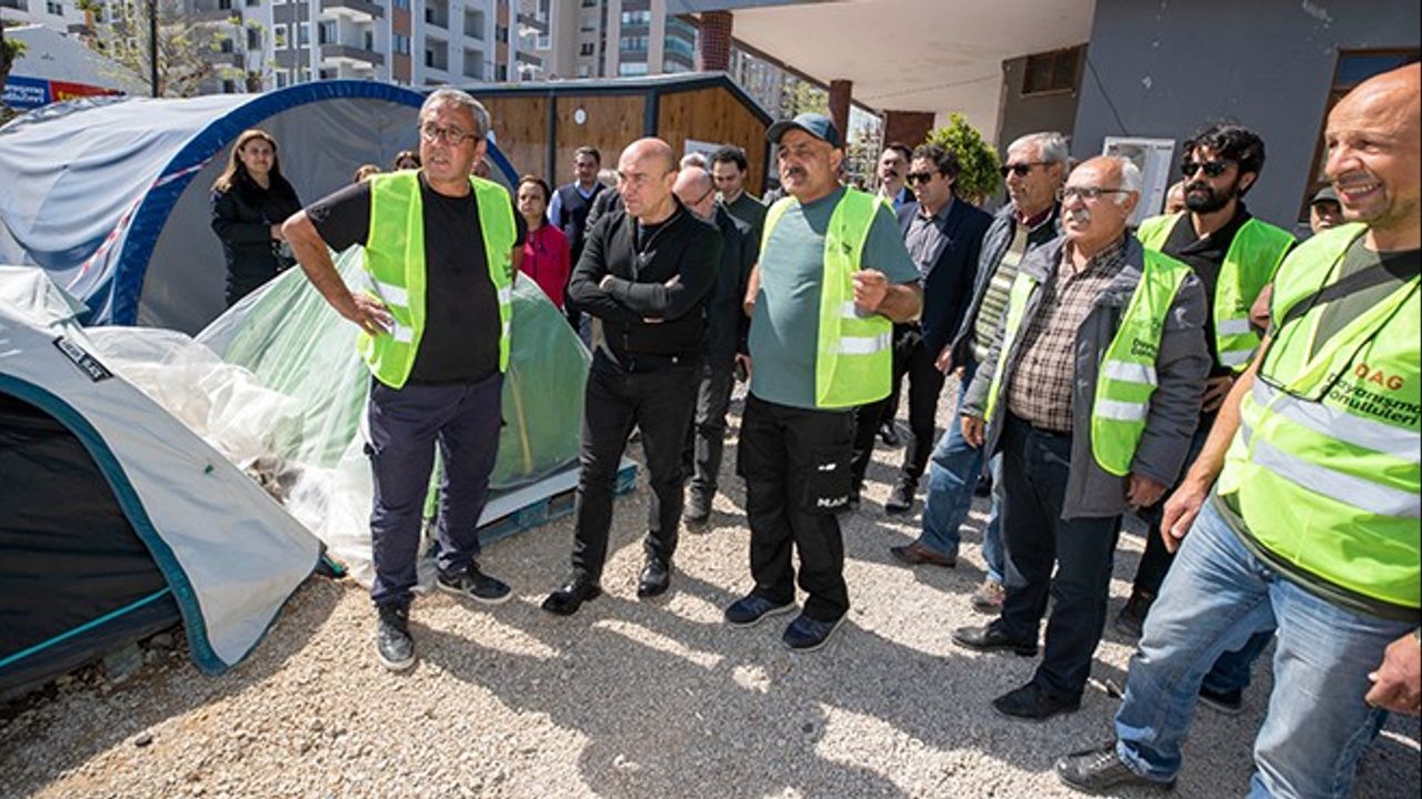 İzmir Büyükşehir Belediye Başkanı Tunç Soyer, Adıyaman, Kahramanmaraş ve Osmaniye'nin ardından inceleme ve ziyaretlerini Hatay'da sürdürüyor. Başkan Tunç Soyer, büyük afetten en fazla etkilenen bölgelerden İskenderun'da depremin dördüncü gününden bu yana depremzedelerin yanında olan İzmir Deprem Gönüllüleri'ni ziyaret etti. Başkan Soyer, bölgenin ihtiyaçlarını yerinde dinledi. İzmir Deprem Gönüllüleri, kurdukları noktada yapılan çalışmaları anlattı.