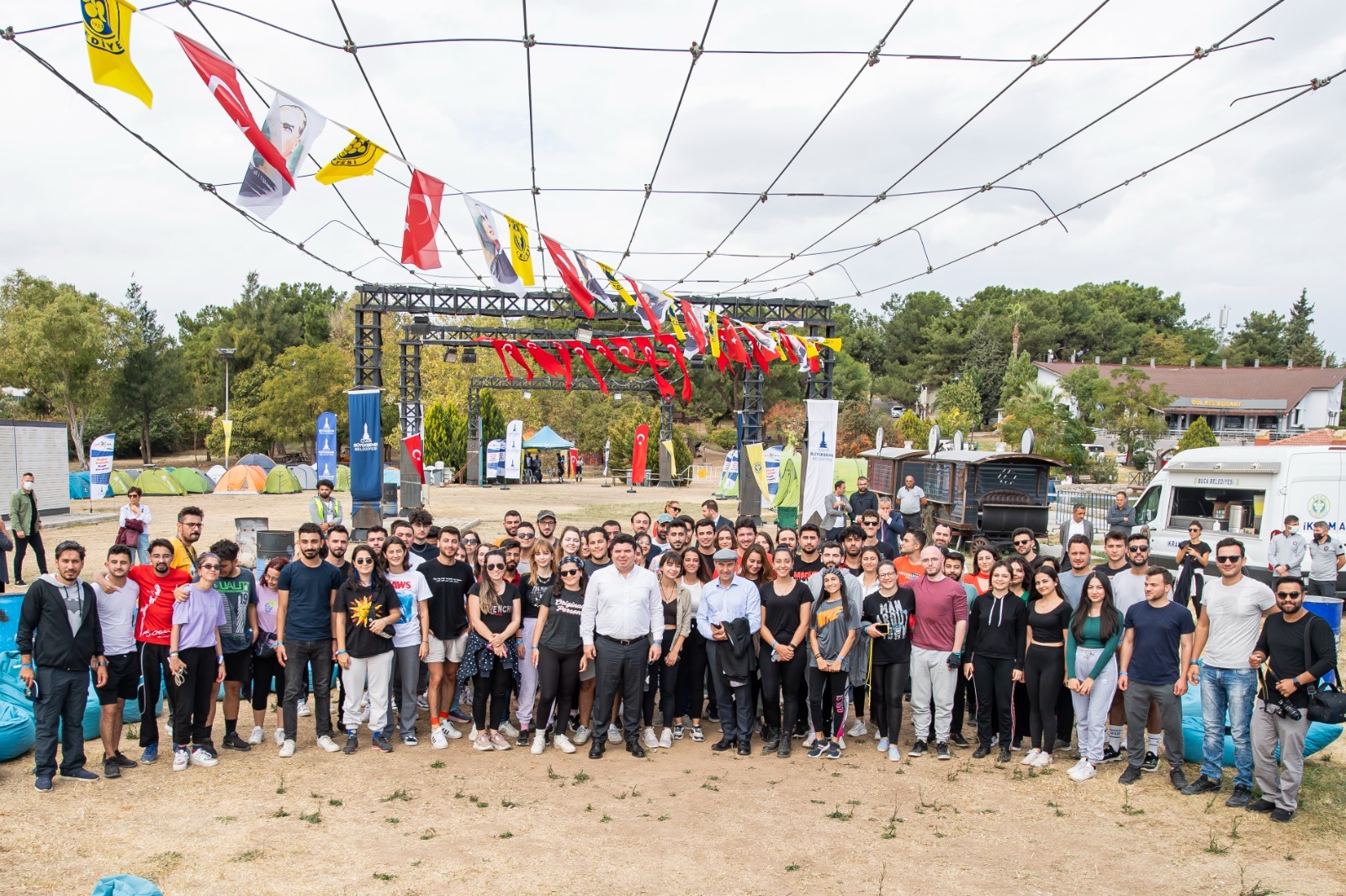 İzmir Büyükşehir Belediye Başkanı Tunç Soyer, Buca Belediye Başkanı Erhan Kılıç ile Buca Gölet Kamp Alanı'nda iklim krizi atölyesine katılan gençleri ziyaret etti. İzmir Büyükşehir Belediyesi Sosyal Projeler Dairesi Başkanlığı Sosyal Projeler Şube Müdürlüğü'ne bağlı Genç İzmir ile Buca Belediyesi Tarık Akan Gençlik Merkezi işbirliğinde düzenlenen gençlik kampında 200 üniversite öğrenciyle bir araya gelen Başkan Soyer, gençlerin iklim krizine ilişkin sorularını da yanıtladı.