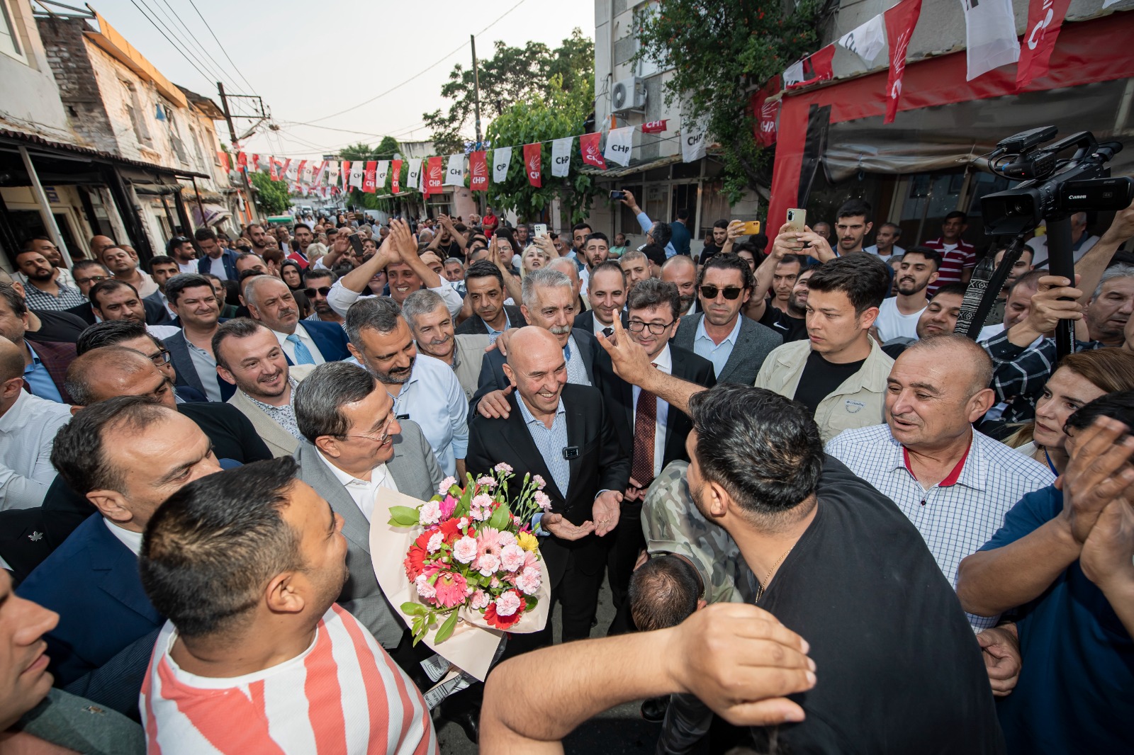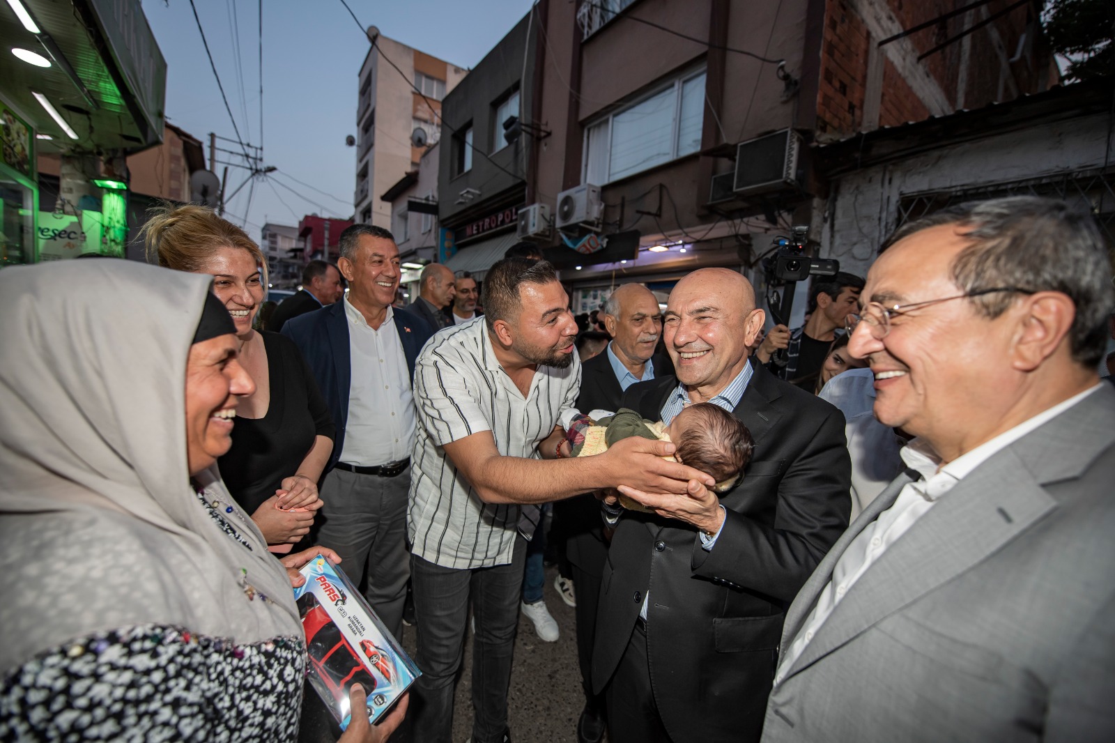 Sokak sokak dolaşan Başkan Tunç Soyer, ikram edilen hamal böreğini tattı, turşu suyu içti. Yurttaşların yoğun ilgisiyle karşılaşan Başkan Soyer, Pazar günü yapılacak Cumhurbaşkanı seçiminin önemine değinerek '50 yıldır bu memlekette iktidar olanlar, bu yoksulluğu, işsizliği, sefaleti reva gördüler. Bu hikayenin değişmesine çok az kaldı. Bu hikaye değişebilir. Kardeşlerim; yoksulluk da işsizlik de sizin kaderiniz değil. Bu bir kader değil. Bu iktidarların size layık gördükleridir. Ama sizler buna layık değilsiniz. Bu memlekette yaşayan kimse bu yoksulluğa layık değil. Ve değiştirmek için çok az bir süre kaldı. Eğer bunu oylarınızla değiştirirseniz, halktan yana bir iktidar için Millet İttifakı Cumhurbaşkanı adayı Kemal Kılıçdaroğlu'nu desteklerseniz, göreceksiniz her şey değişecek' dedi.