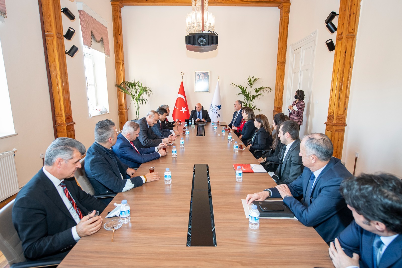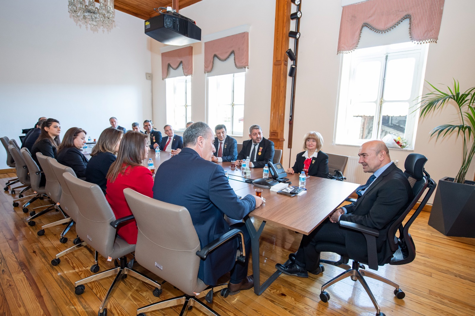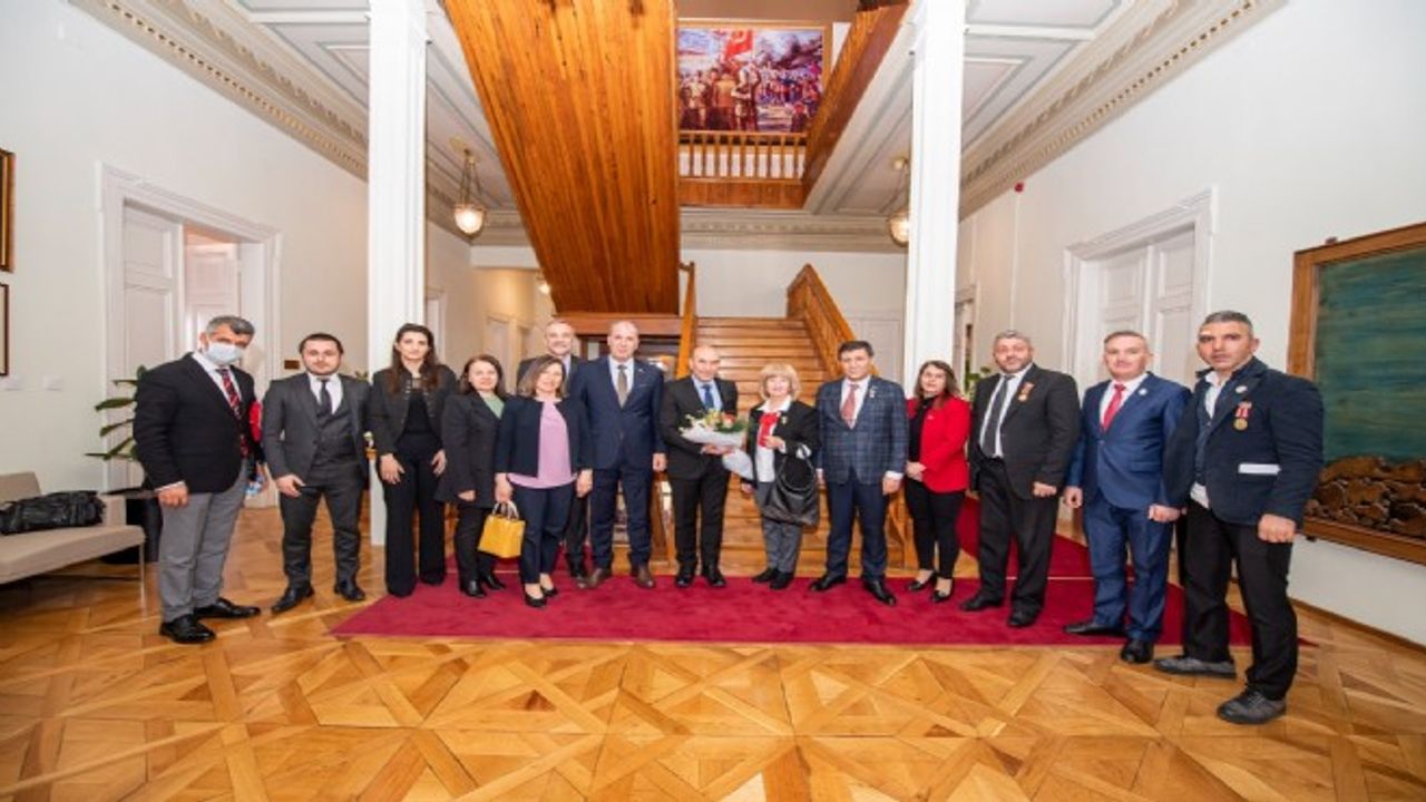 İzmir'deki şehit ve gazi derneklerinin temsilcileri,18 Mart Şehitleri Anma Günü ve Çanakkale Zaferi'nin 107'inci yıldönümü nedeniyleİzmir Büyükşehir Belediye Başkanı Tunç Soyer'i ziyaret etti. Başkan Tunç Soyer, şehit ve gazi derneklerinin temsilcilerini ağırlamaktan duyduğu memnuniyeti dile getirdi.