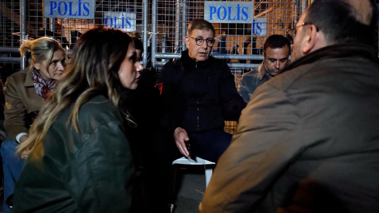 Hukukçu arkadaşlarımız hukuk mücadelesine devam ediyorlar. Ama biz de bunu kabullenmediğimizi göstermek adına burada belediye başkanlarımızla, il başkanımızla, meclis üyelerimizle beraber nöbet tuttuk. Bugün de sürdürüyoruz bunu, sürdüreceğiz. TOMA'ların arasındayız. Meslek Fabrikası'nın kapısının ve duvarlarının önüne kurulmuş barikatların önündeyiz. İçeride yine çok sayıda polis var. Dün gece çok fazla insan ziyaret etti, geldiler, eşlik ettiler. Bugün daha da büyük bir kalabalık var burada."