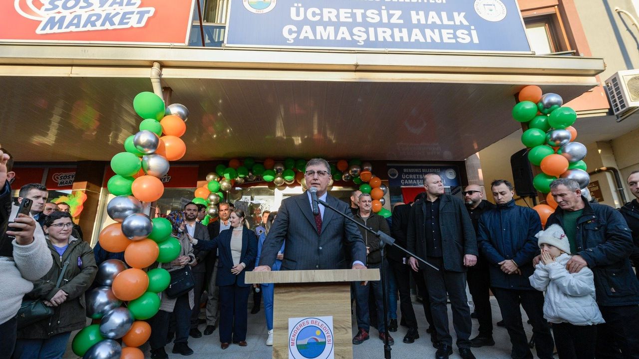 Menderes Belediye Başkanı İlkay Çiçek ise “Sosyal market projemiz toplumumuzun en hassas noktalarına dokunan çözüm modeli olarak ortaya çıkıyor. Bu market, paranın geçmediği, tamamen puan bazlı çalışan, ihtiyaç sahipli vatandaşlarımızın ürünlerine adil bir şekilde kolaylıkla erişebileceği bir dayanışma merkezidir” dedi. Çiçek ayrıca Büyükşehir Belediyesi’ne Menderes’e hizmet desteği için teşekkür etti.
