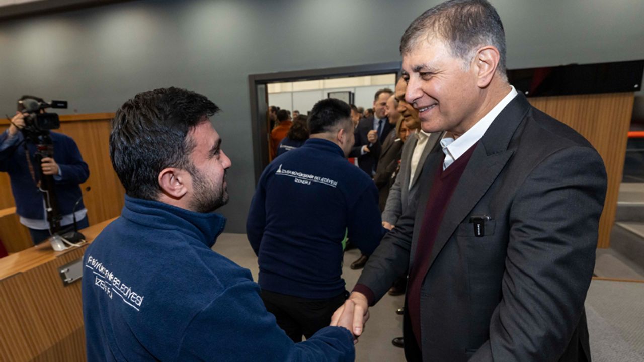 İzmir Büyükşehir Belediye Başkanı Dr. Cemil Tugay, yılın son iş gününde belediye personeliyle bir araya geldi. Kültürpark’taki İzmir Büyükşehir Belediyesi Meclis Toplantı Salonu’nda gerçekleşen buluşmaya yoğun bir katılım vardı. Büyükşehir Belediye Başkanı Dr. Tugay, kentte gerçekleştirilen hizmetler için İzmir halkı adına belediye üst yönetimine ve tüm personele teşekkür etti.