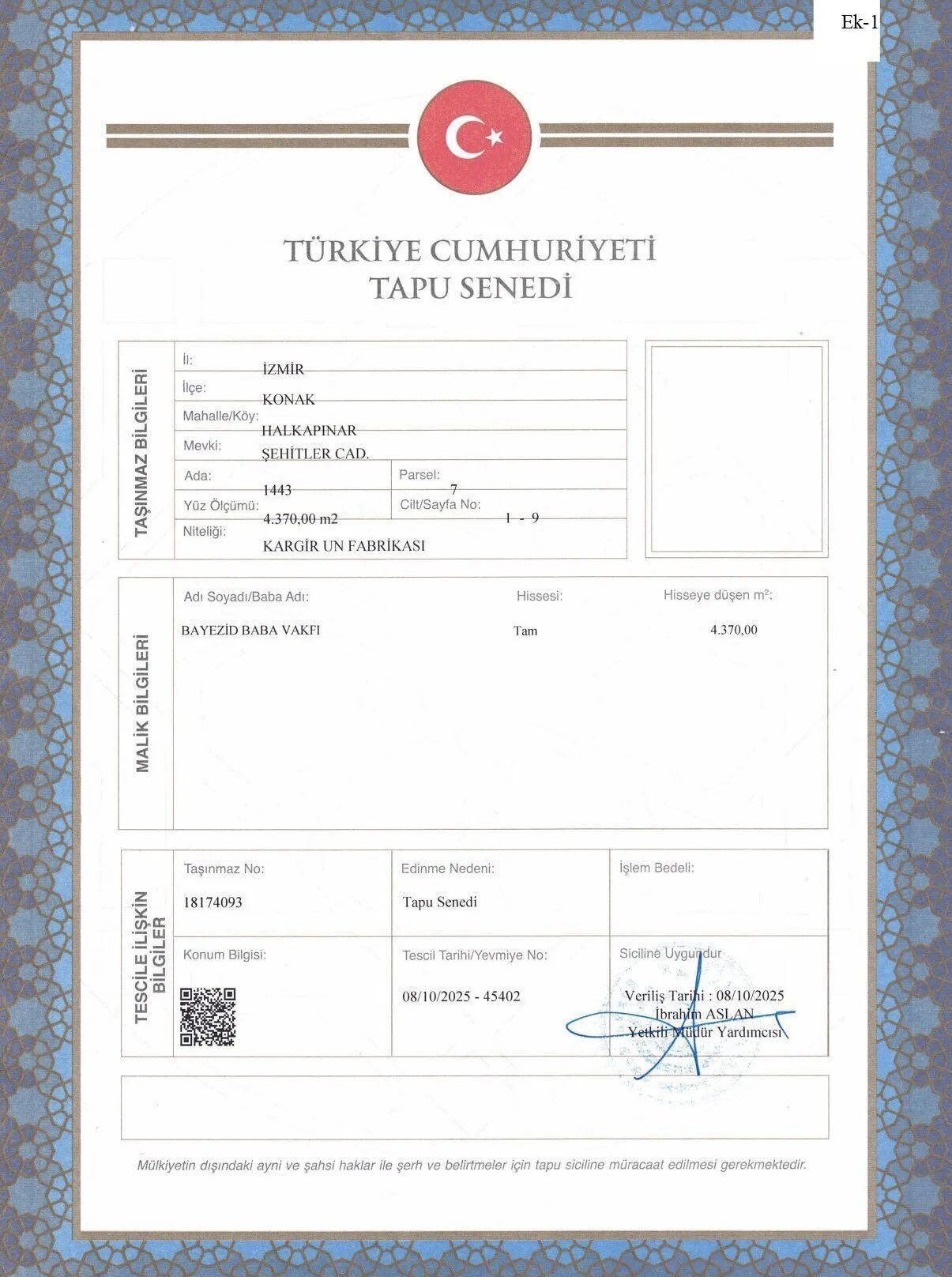 Başkan Tugay, Meslek Fabrikası binasına ilişkin tartışmalarla ilgili açıklama yaparak yapının belediyeye ait olduğunu vurguladı. Tugay, sosyal medya hesabından binanın tapusunu paylaşarak, Meslek Fabrikası’nın İzmir Büyükşehir Belediyesi tarafından eğitim amaçlı kullanıldığını ve İzmirlilere ait bir kamu hizmeti alanı olduğunu ifade etti.