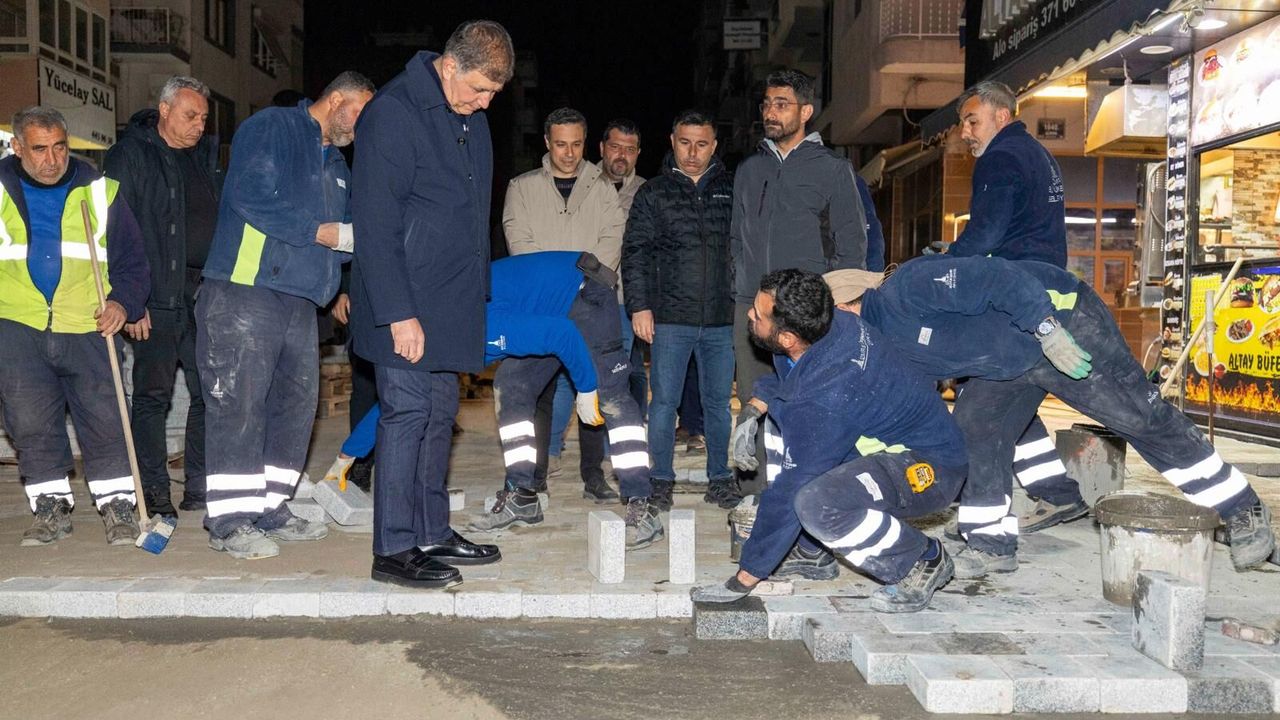 İzmir Büyükşehir Belediye Başkanı Dr. Cemil Tugay, Yol Yapım Bakım ve Onarım Dairesi Başkanlığı tarafından yapımı devam eden Güzel İzmir Hareketi’nin Bayraklı Sevgi Yolu çalışmalarını ve Buca Uğur Mumcu Caddesi’ndeki asfalt serimini sabaha karşı yerinde inceledi. Başkan Dr. Cemil Tugay’a İzmir Büyükşehir Belediyesi Genel Sekreter Yardımcısı Halit Çelik, Yol Yapım Bakım ve Onarım Dairesi Başkanı Selahattin Mamikoğlu ve İZBETON yetkilileri eşlik etti. Büyük bölümü gece saatlerinde yürütülen çalışmaları inceleyerek bilgi alan Başkan Tugay, sahada emek veren personelin molasına katılarak çay içti, sohbet etti. Gece mesaisini saat 01.00’de Bayraklı Sevgi Yolu ile başlatan Başkan Tugay, ardından Buca Uğur Mumcu Caddesi’ne uğradı. Burada da çalışmalar hakkında bilgi alan Başkan Tugay, ekiplere kolaylıklar diledi.